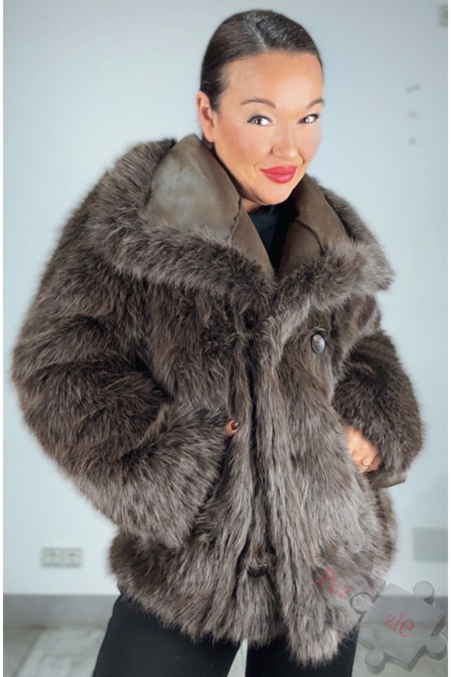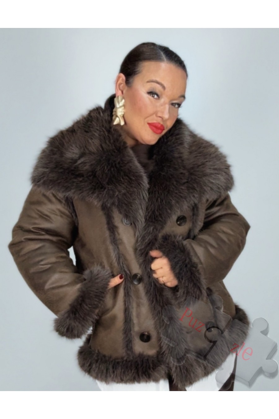 Abrigo de pluma de oca en tono marrón combinado con vaquero bordado, disponible en talla única
