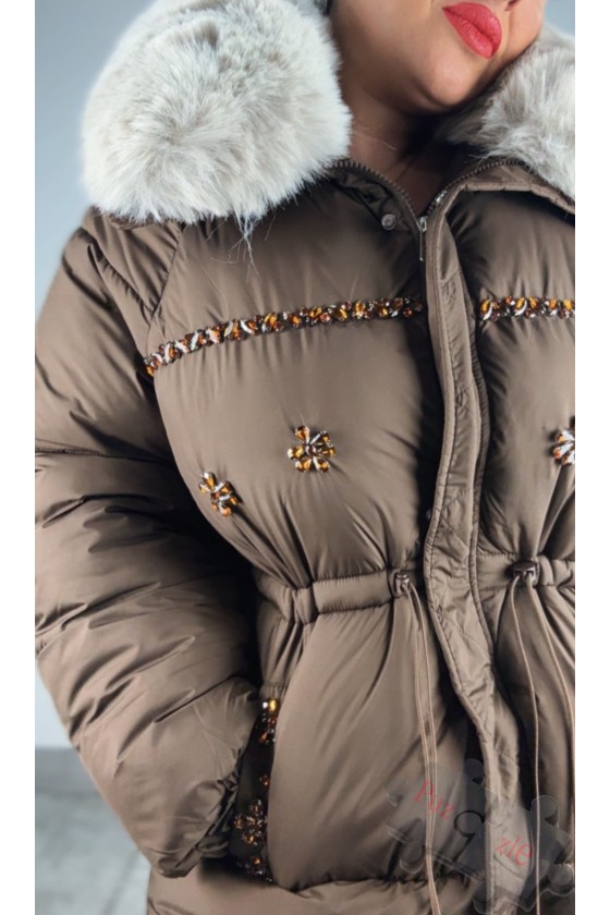 Abrigo joya en tono chocolate , el cuello se desmonta , disponible en tallas