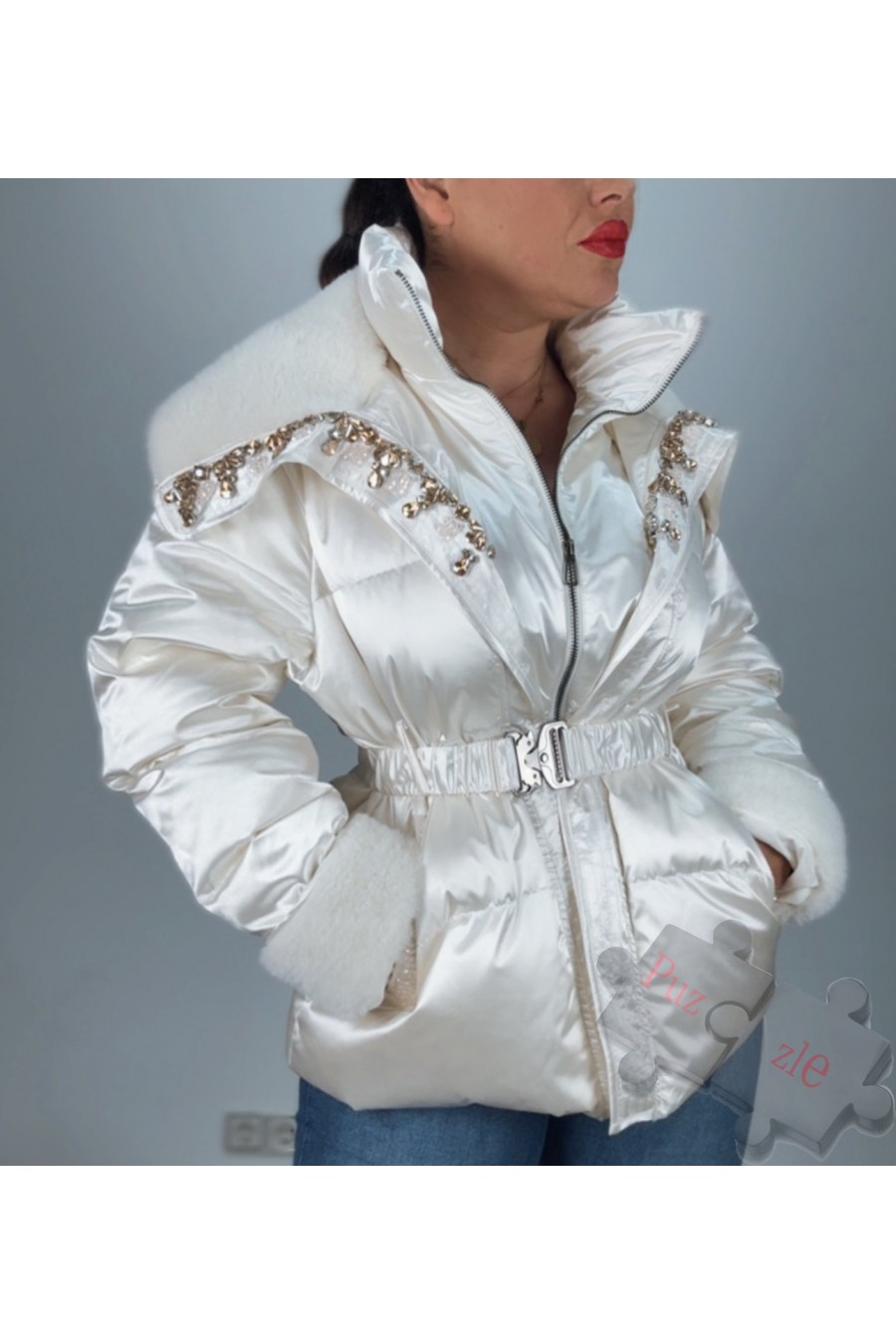 Bomber de antelina con lentejuela y pedrería , disponible en talla única
