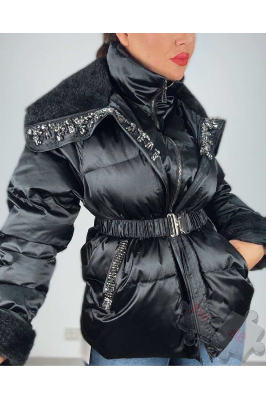 Abrigo corto de lentejuelas en tono negro , disponible en talla única