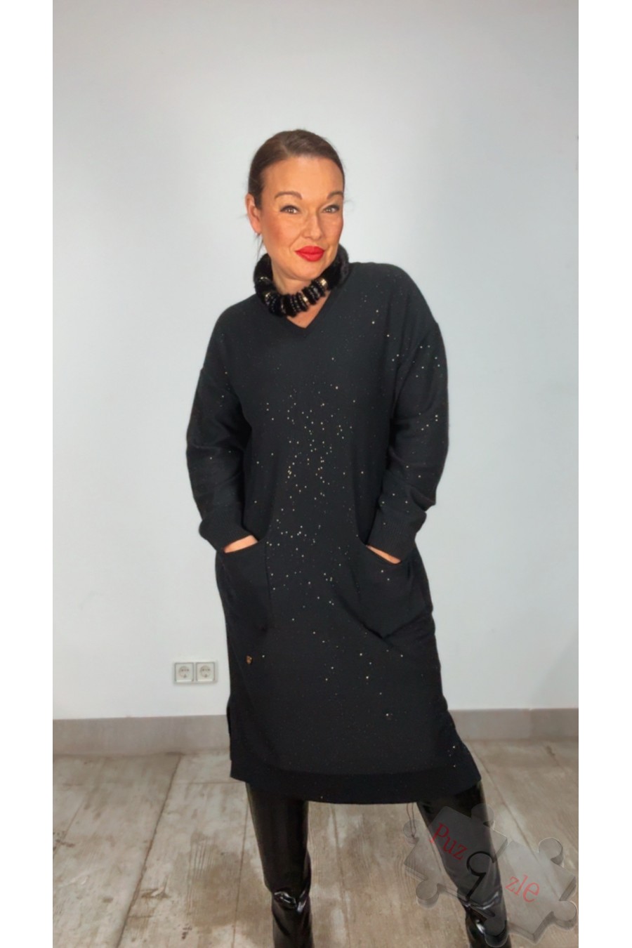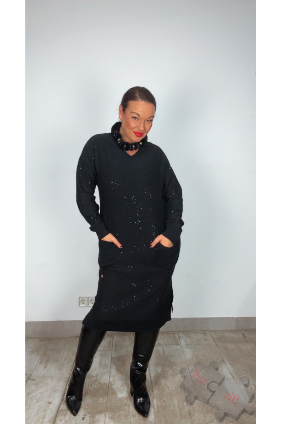 Chaqueta en tono negro con brillo y maxibotones, disponible en talla única , lleva elastano