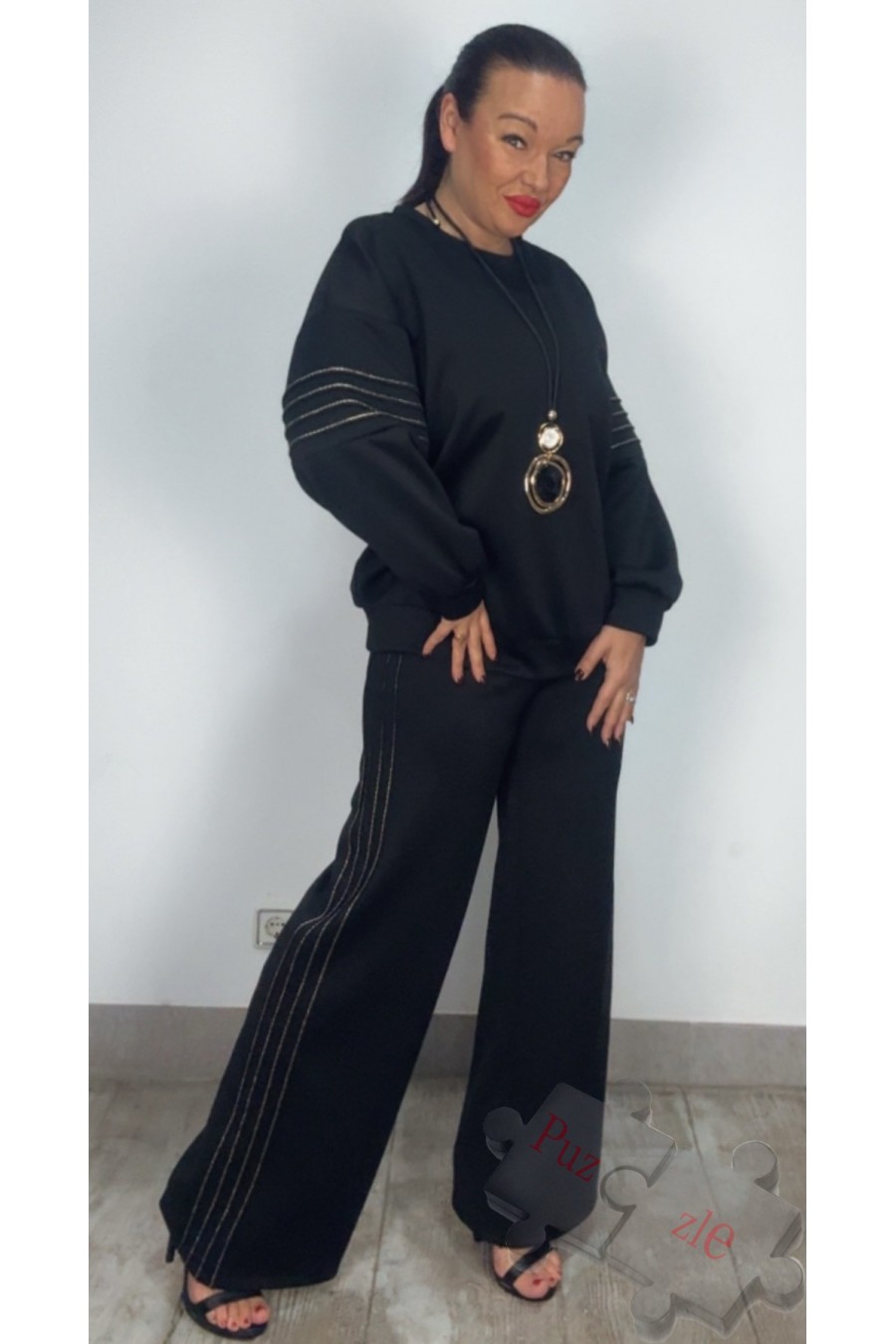 Conjunto de punto milano en tono negro con detalles en dorado , disponible en talla única