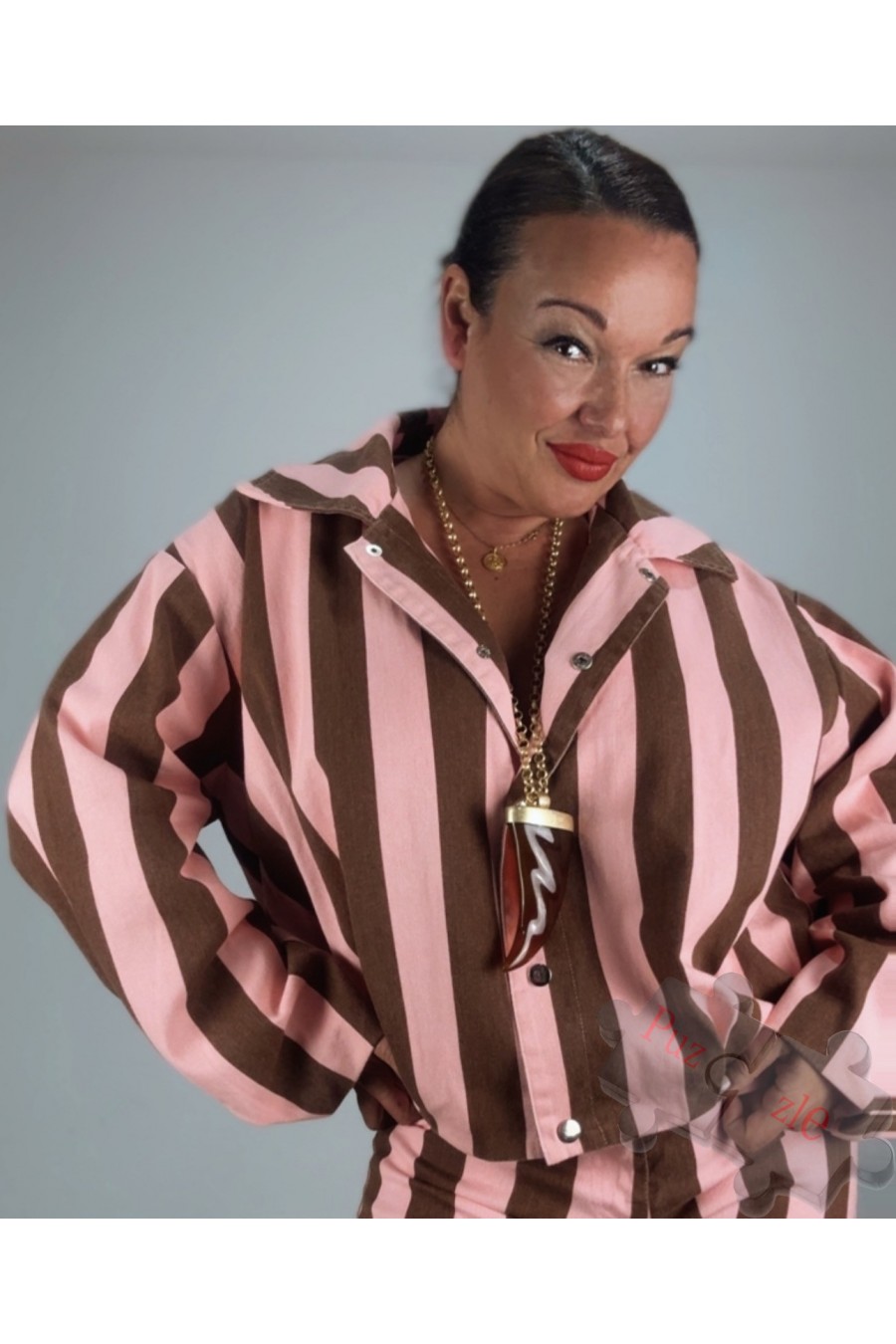 Chaqueta tejana en tono marrón y rosa , disponible en dos tallas