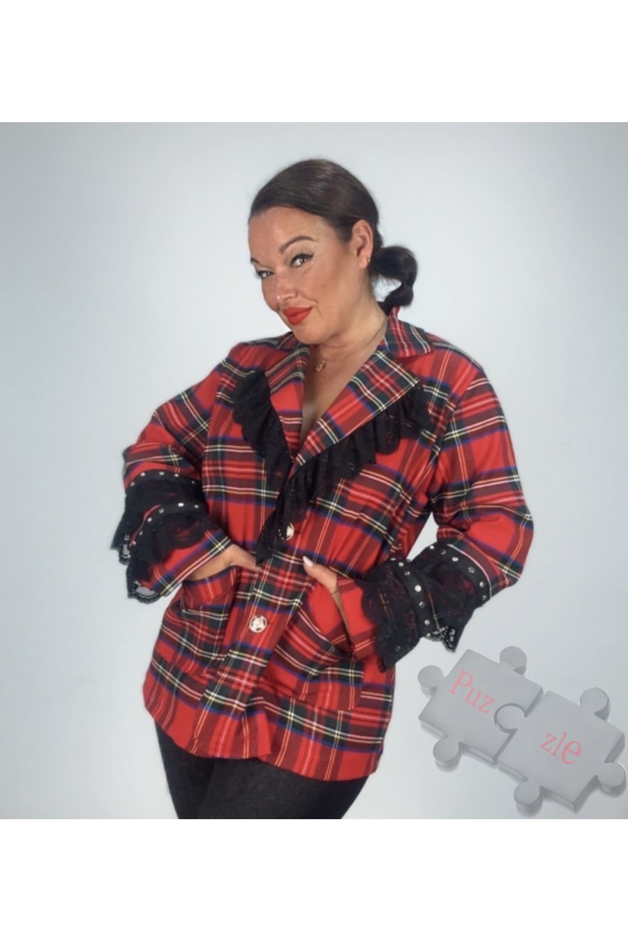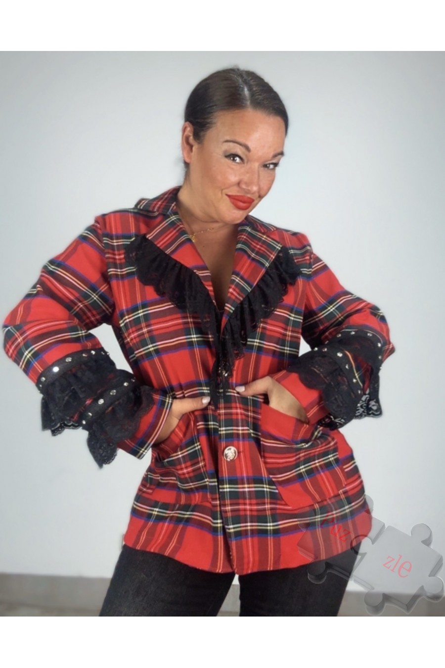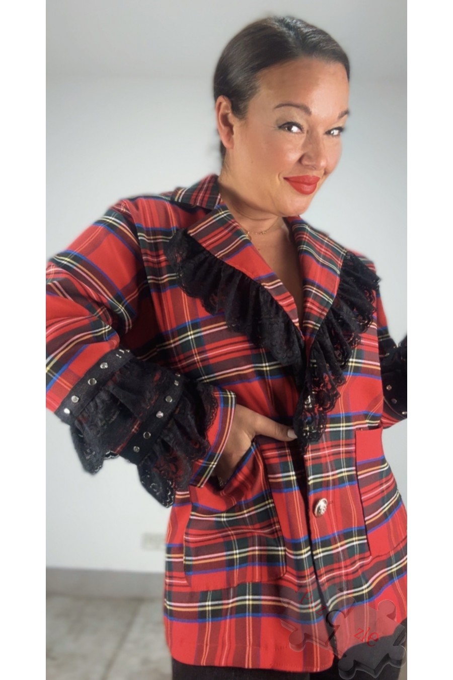 Chaqueta de cuadros con encaje y tachuelas, disponible en tallas: