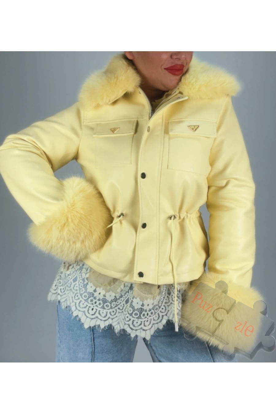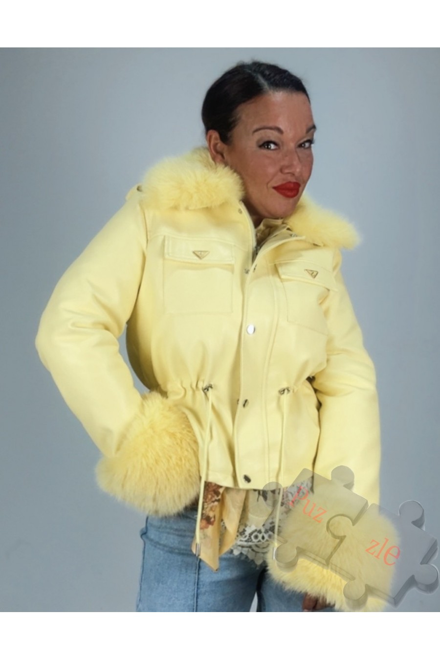 Chaqueta de polipiel en tono amarillo con pelo desmontable , disponible en dos tallas