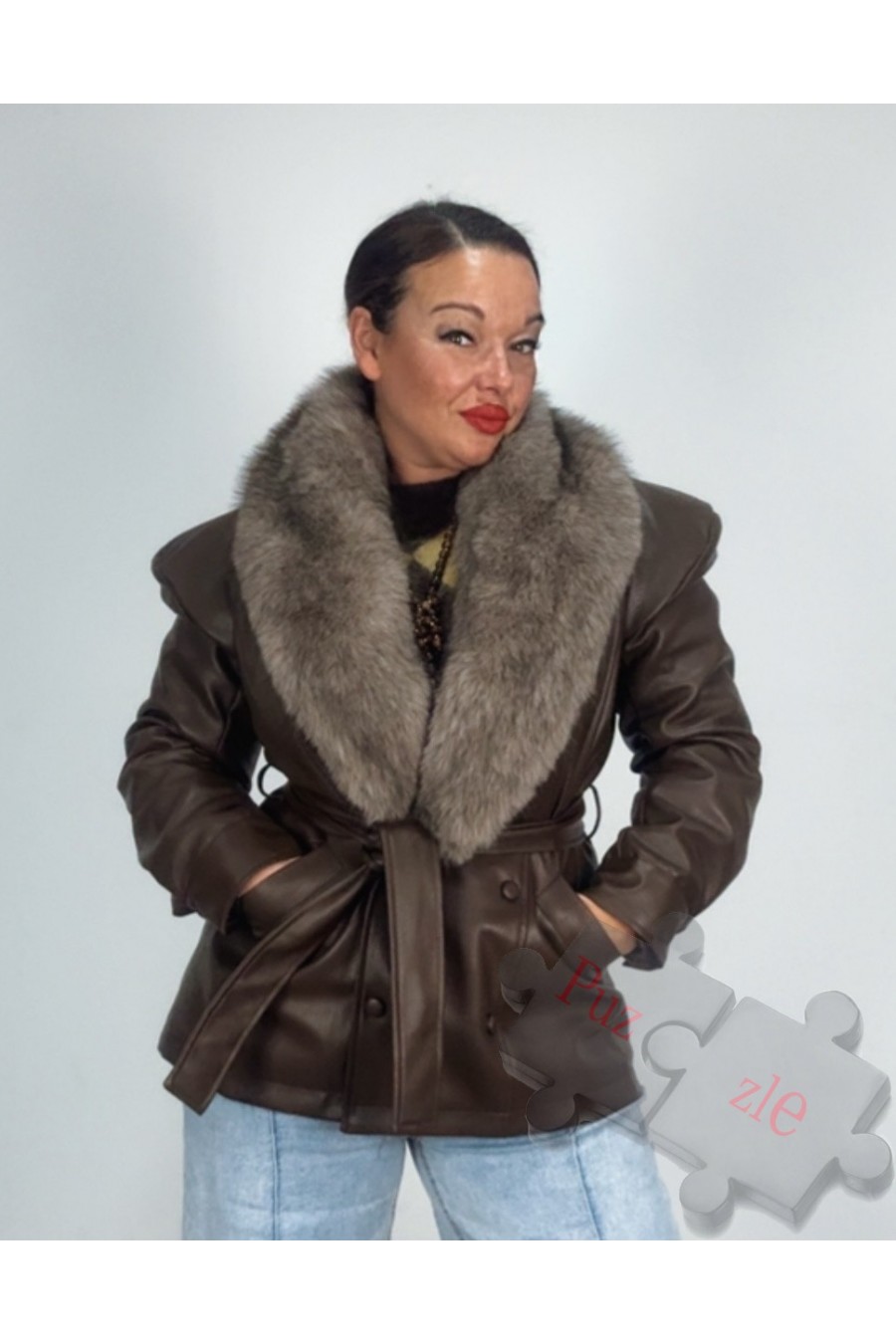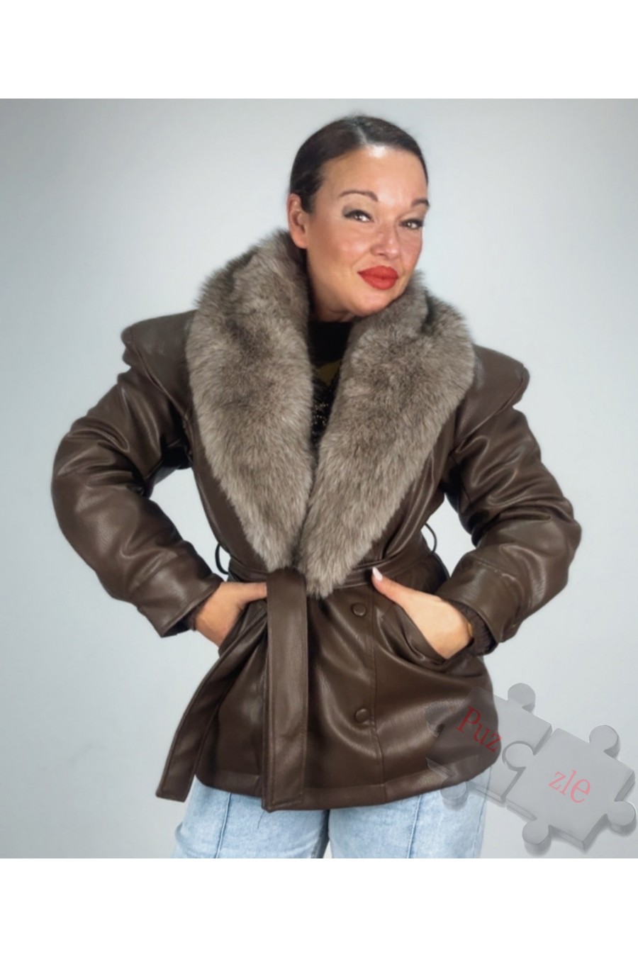 Chaqueta de polipiel en tono chocolate forrada de pelo por dentro y cuello desmontable , disponible en talla única
