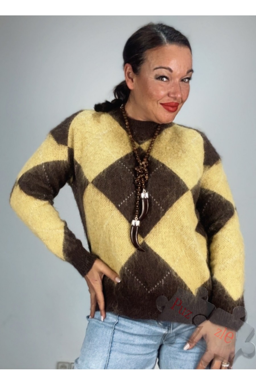 Suéter de lana en tono amarillo y chocolate , disponible en talla única