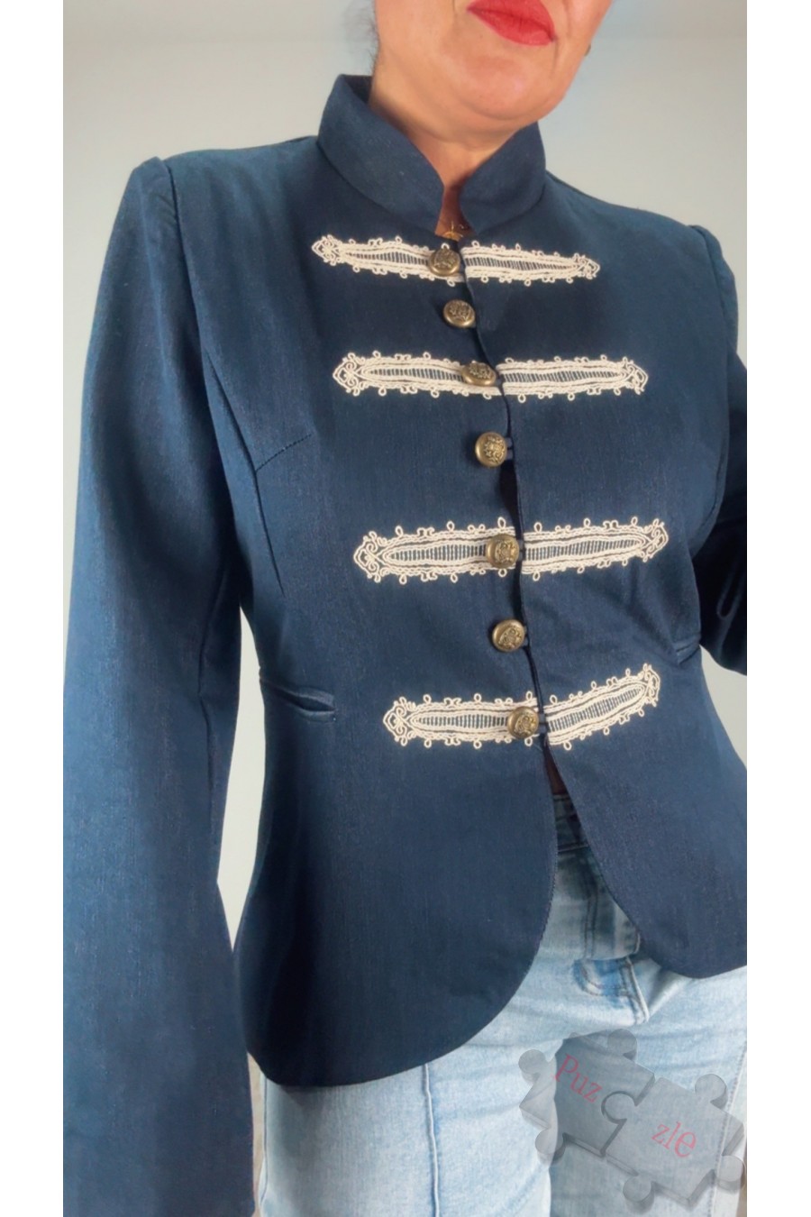 Chaqueta tejana con bordados y botones tipo militar , disponible en tallas: