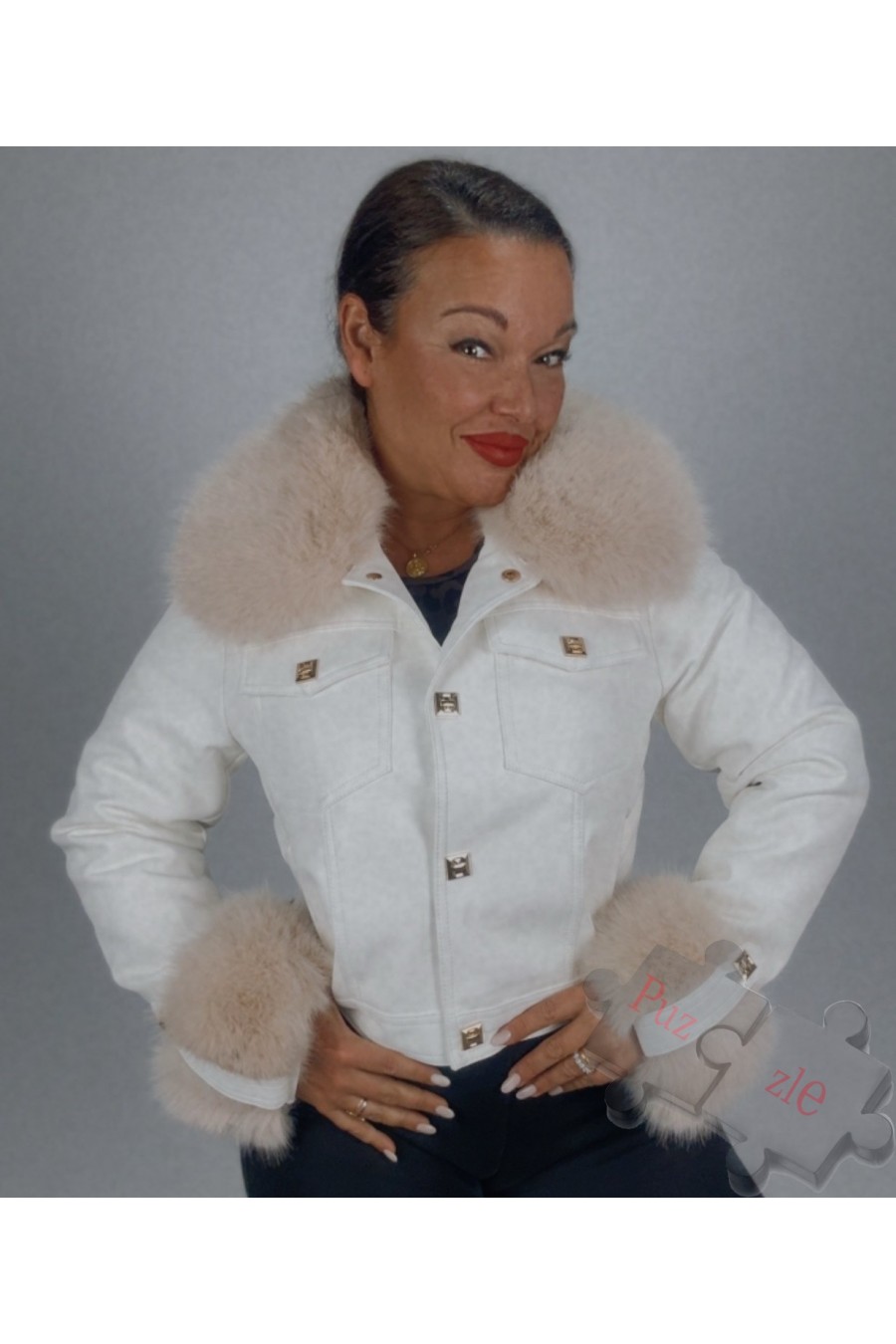 Chaqueta de polipiel con cuello y mangas desmontables, disponible en tres tallas