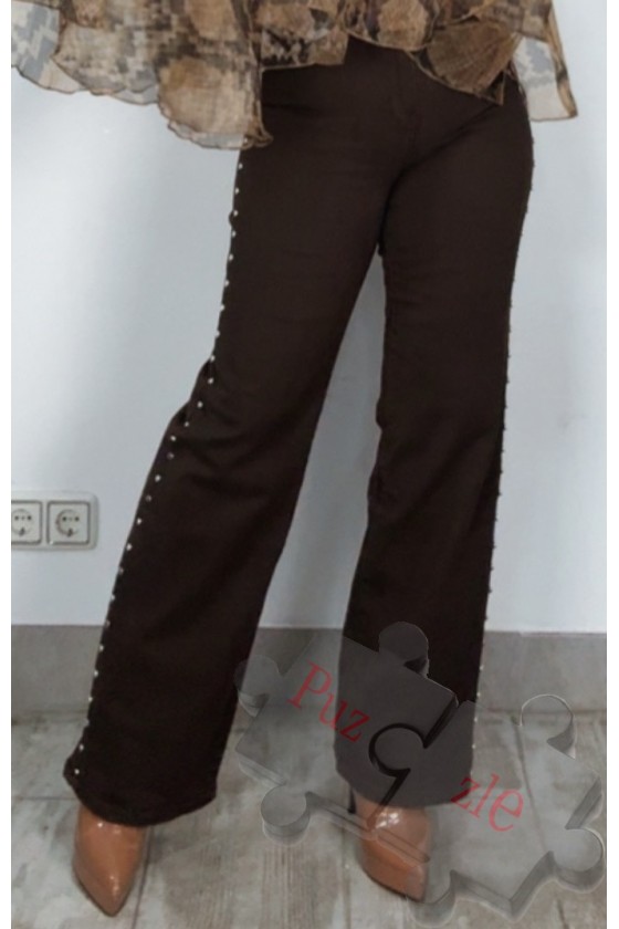 Pantalón tejano elástico en tono marrón con tachas, disponible en tallas , estiran mucho