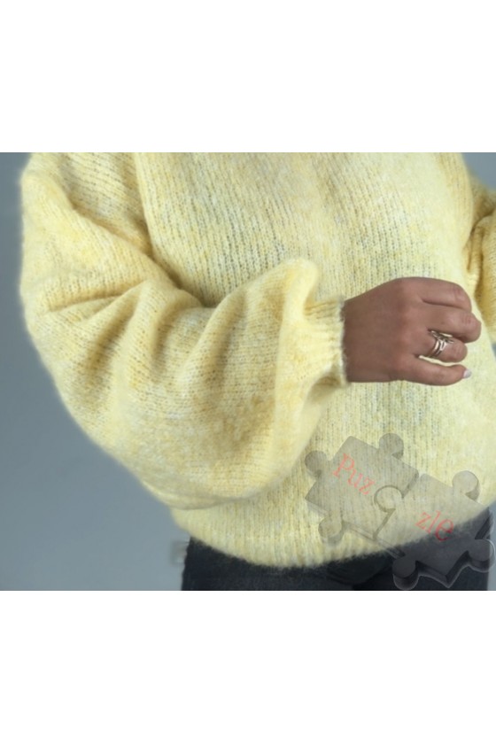 Suéter de lana en tono amarillo con mangas abullonadas, disponible en talla única