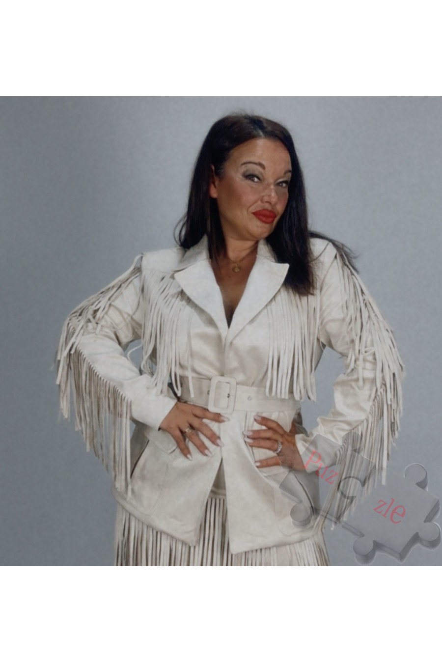 Conjunto de falda y chaqueta de tejido acordeón , disponible en talla única que oscila desde la talla 40a 52 sin problema