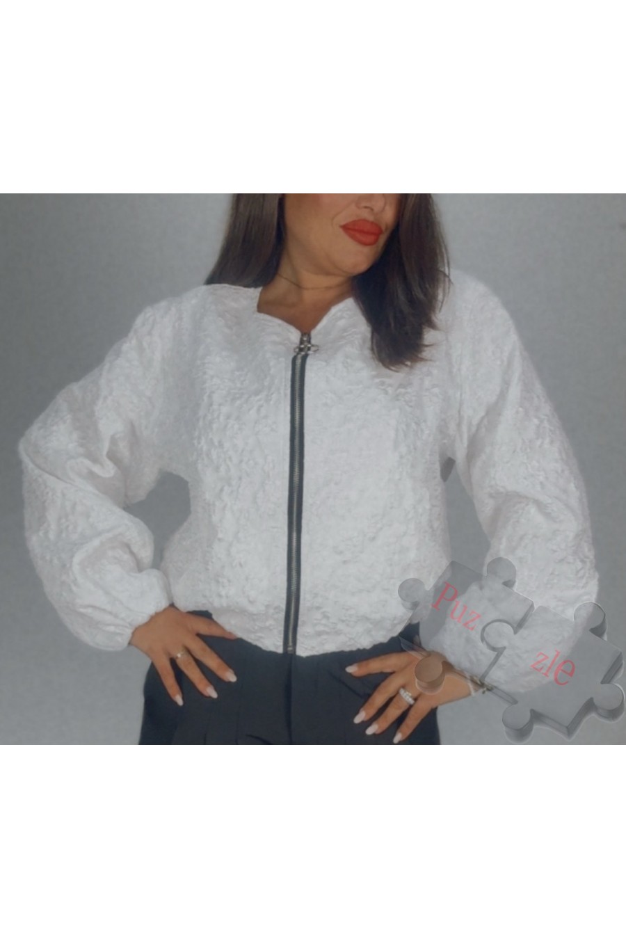 Chaqueta tipo bomber en tono blanco , disponible en talla única