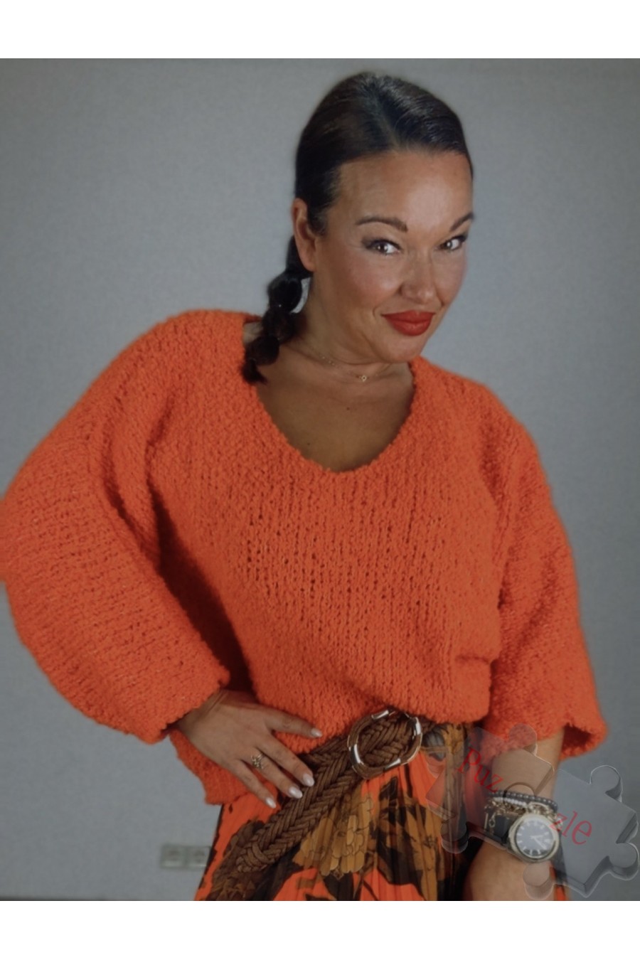Suéter de manga al codo con escote de pico , disponible en talla única