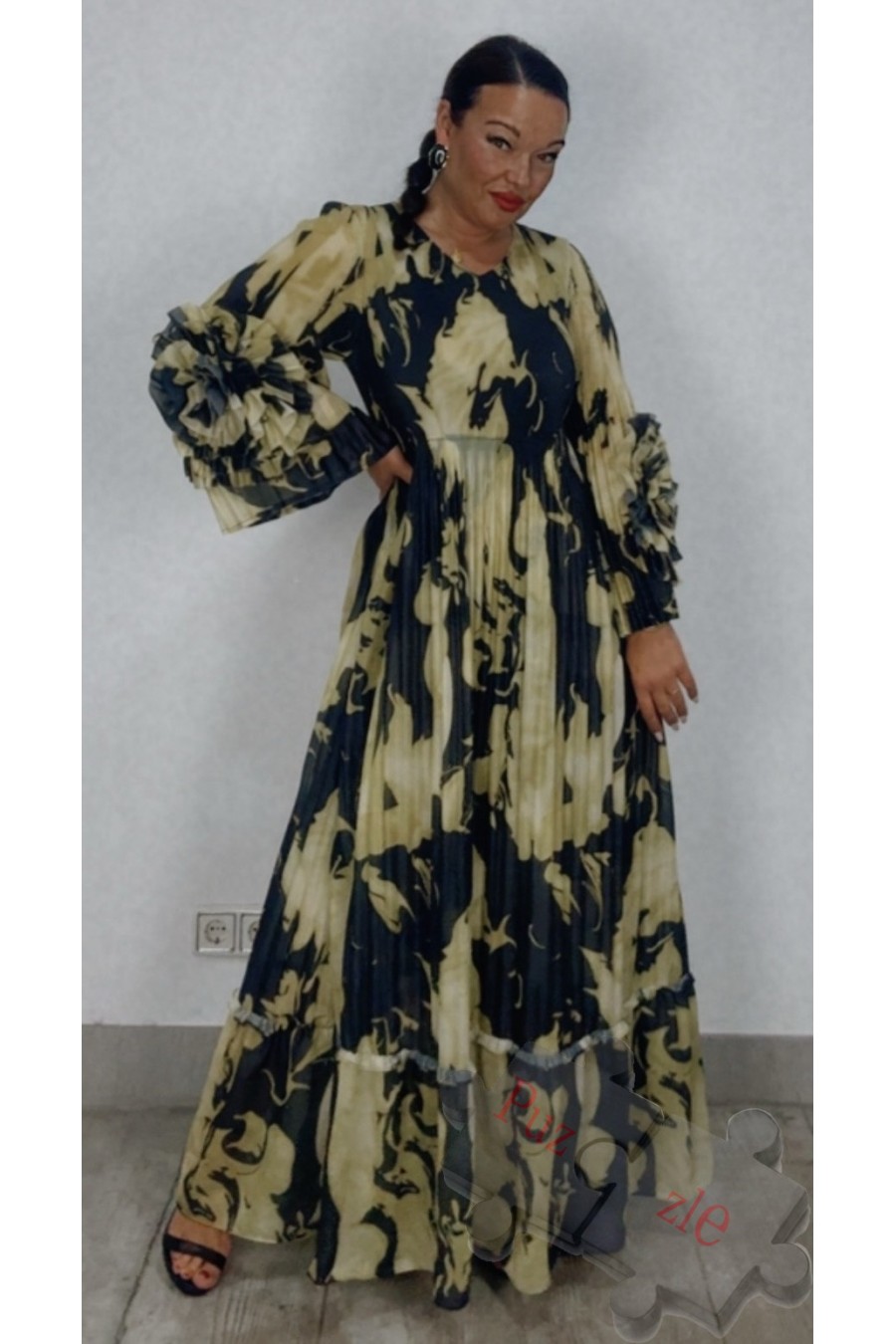 Vestido estampado de tejido acordeón , disponible en talla única
