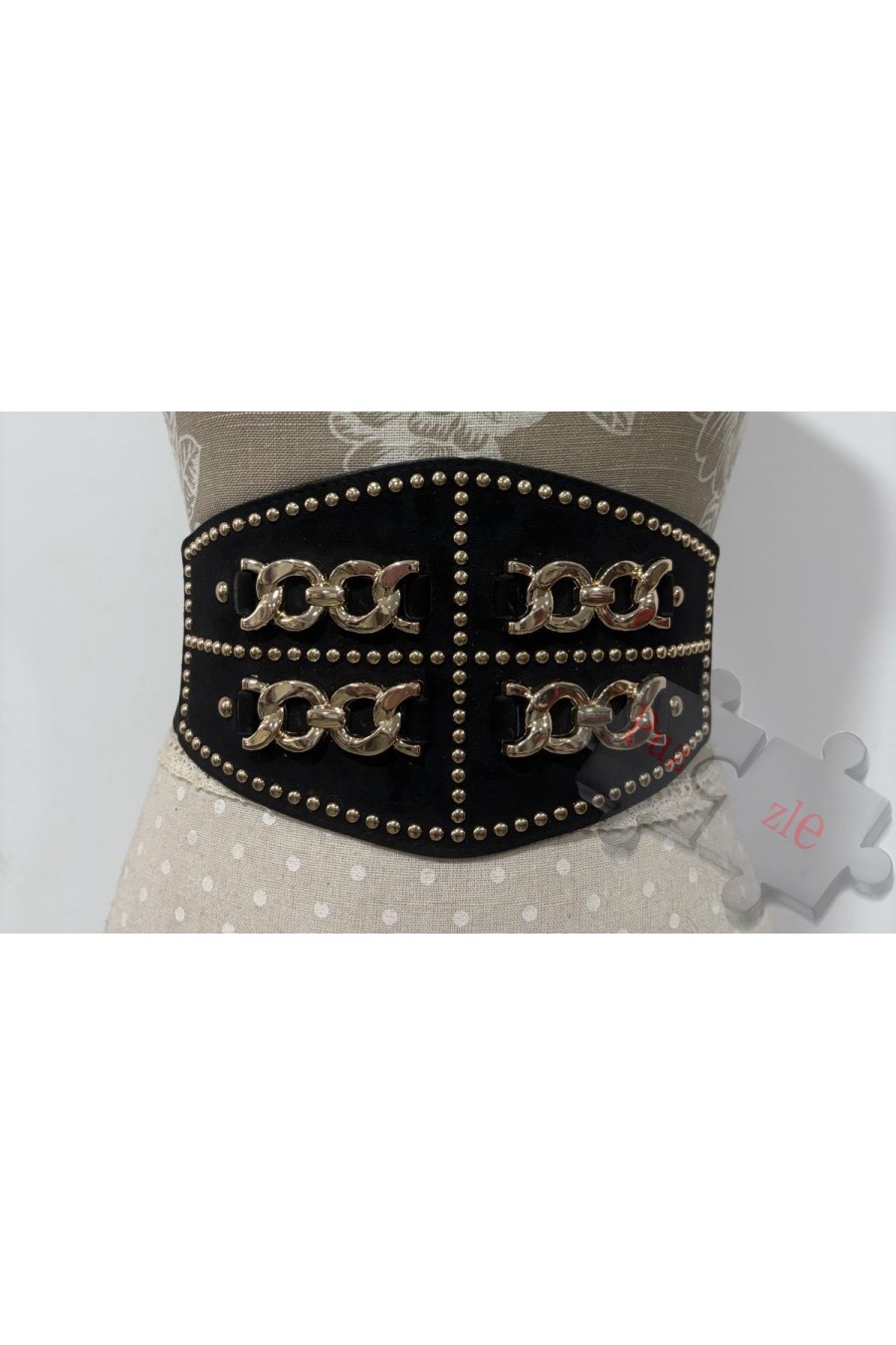 Conjunto de punto milano en tono negro con detalles en dorado , disponible en talla única