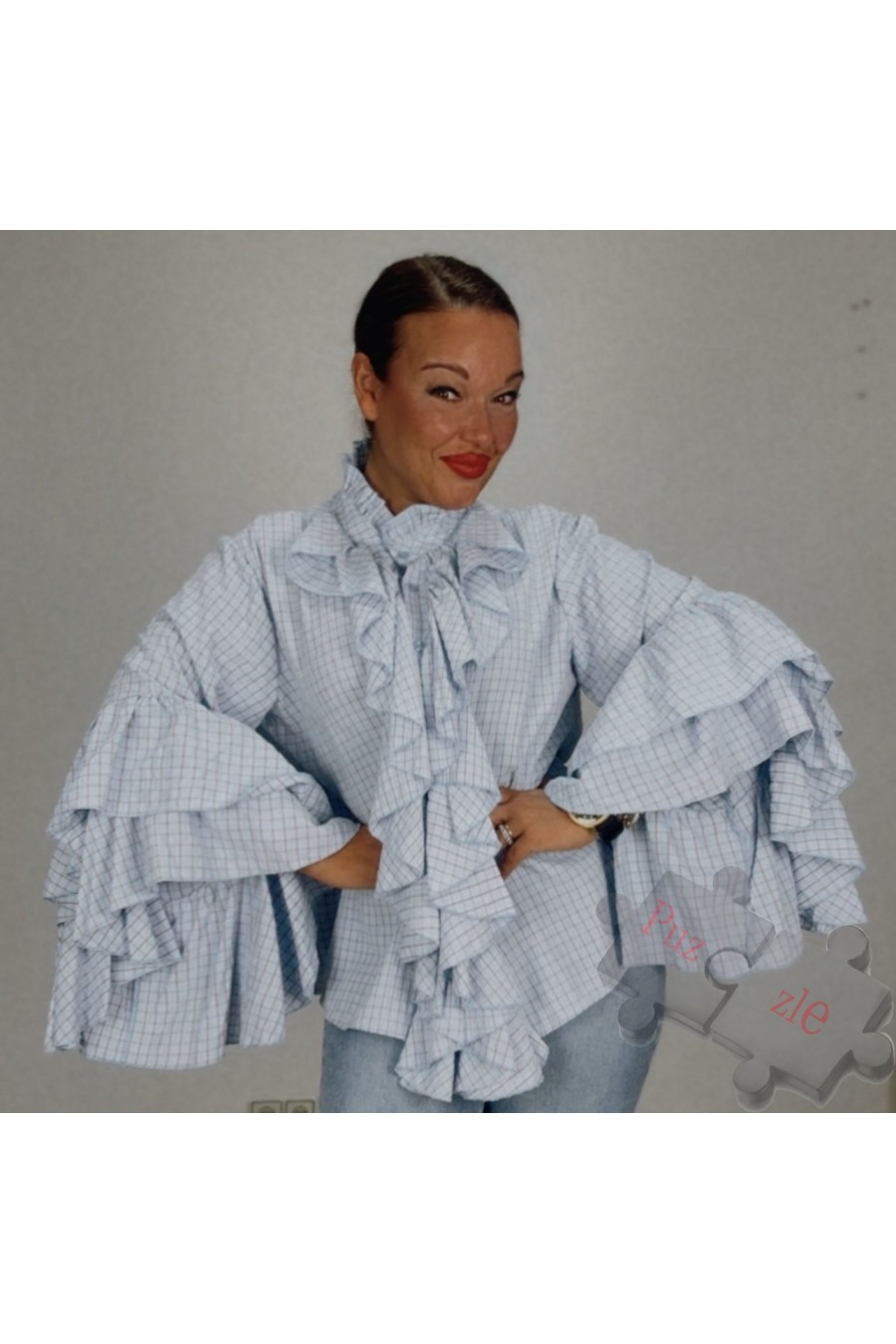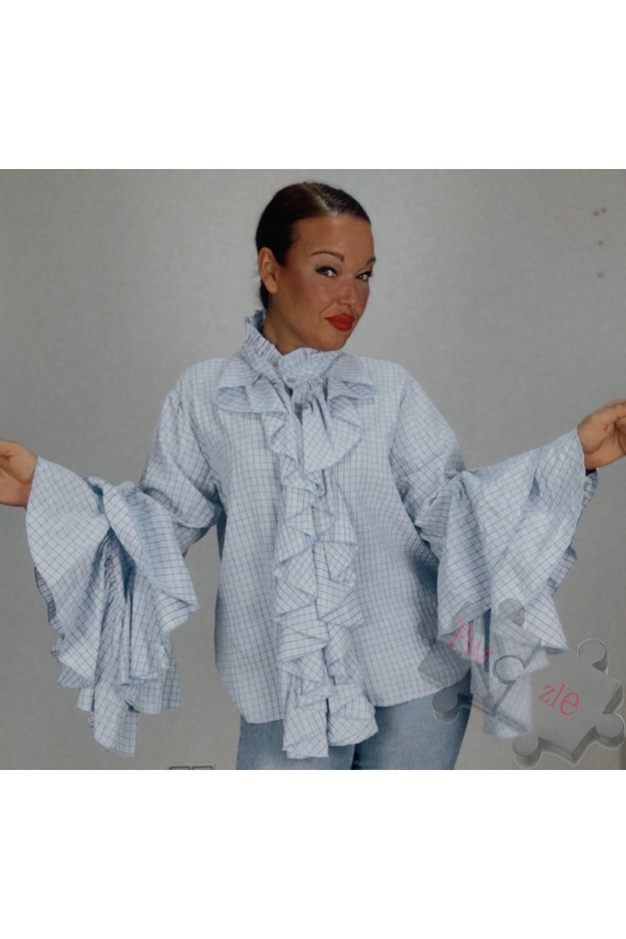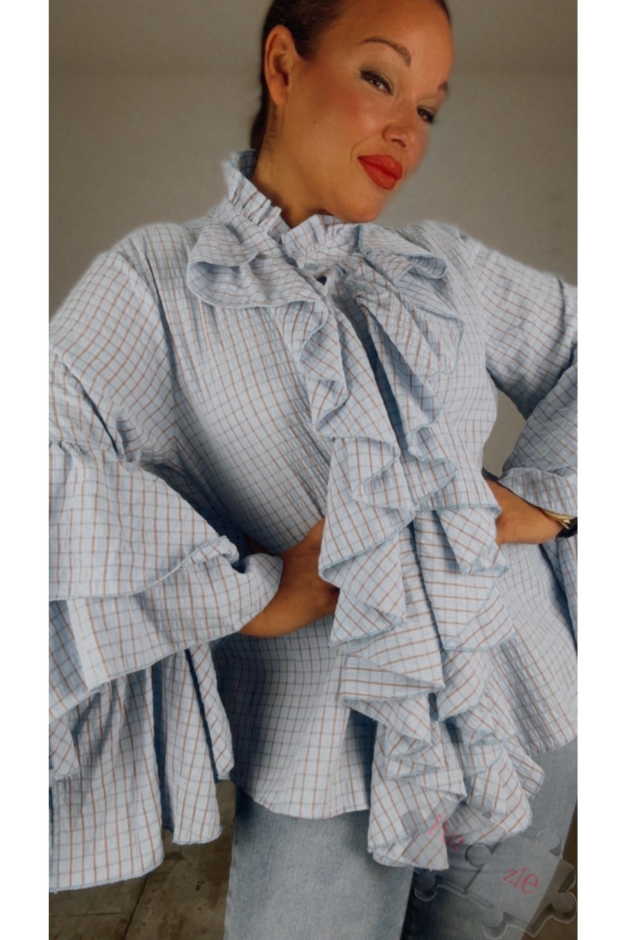Camisa de cuadro en azul cielo con volantes, disponible en talla única