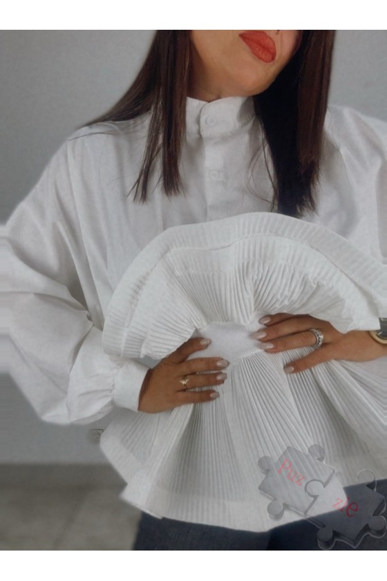 Camisa en tono blanco con Volante plisado en cintura , disponible en talla unica
