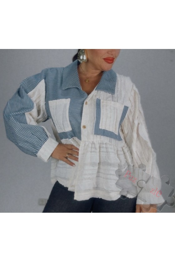 Camisa tejana con gasa en crudo , disponible en talla única