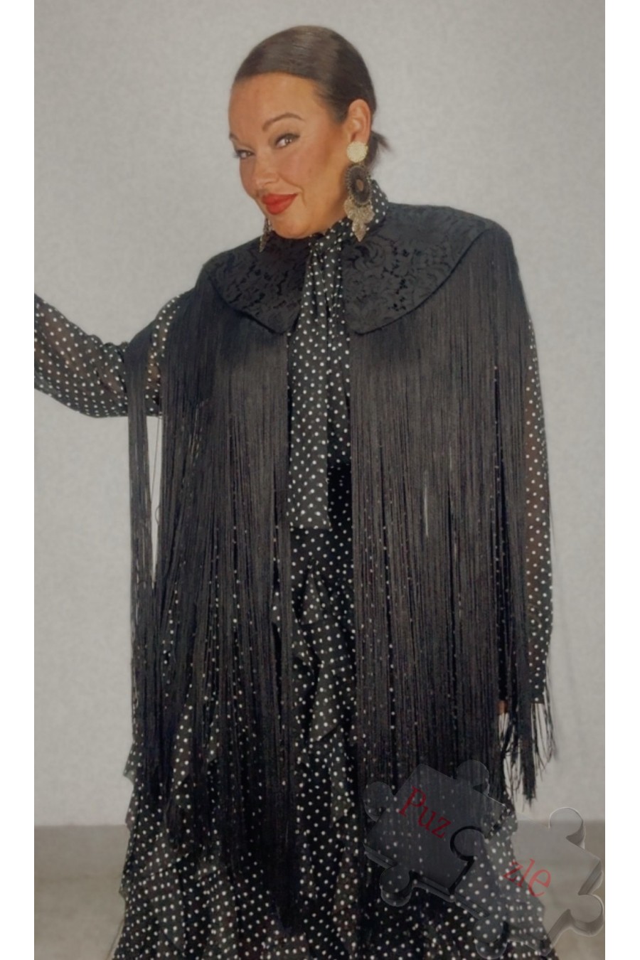 Capa de fleco con hombreras y encaje , disponible en talla única