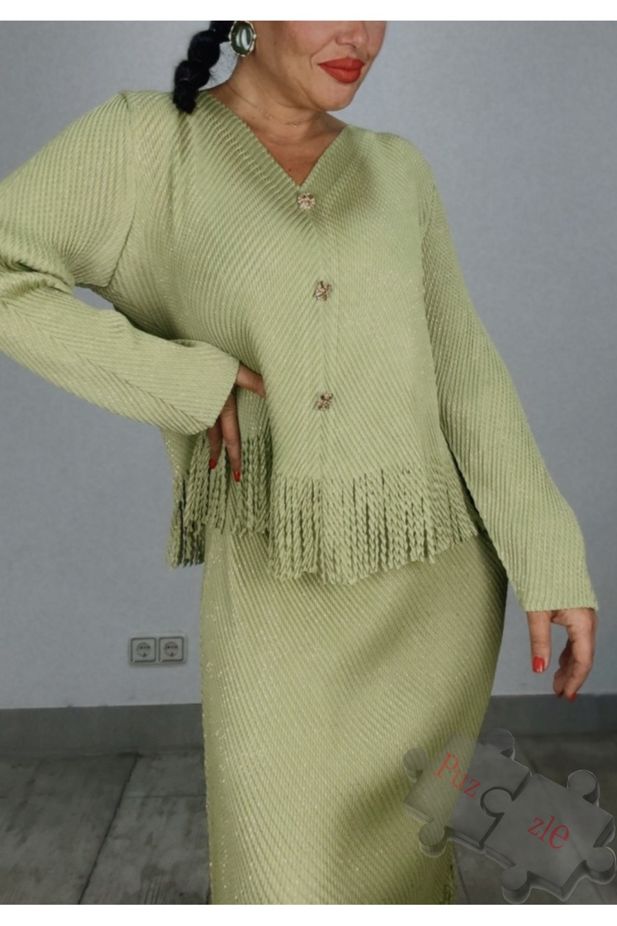 Conjunto de falda y chaqueta de tejido acordeón , disponible en talla única que oscila desde la talla 40a 52 sin problema