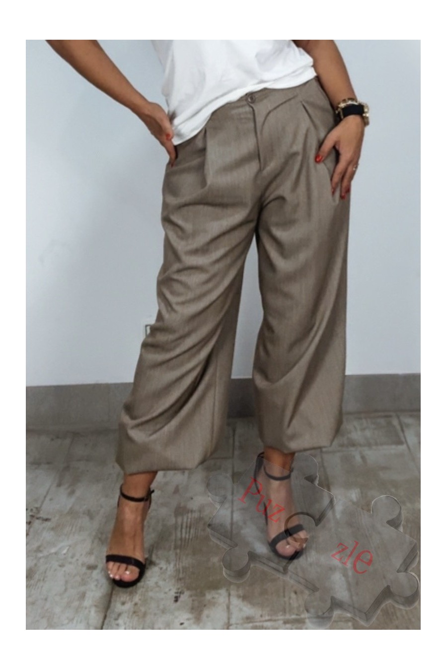 Pantalón bombacho en color crudo , disponible en talla única