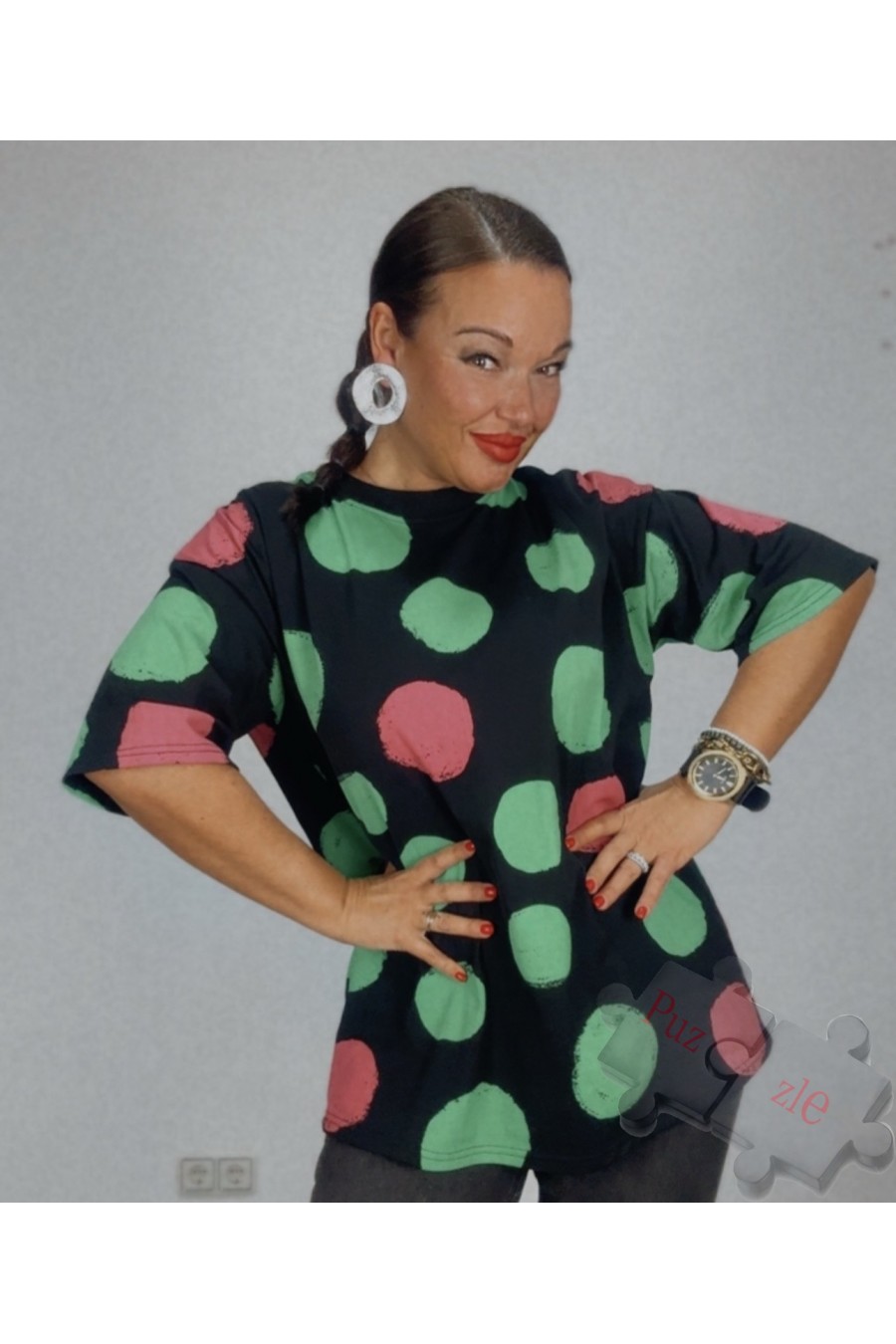 Camisa en tono blanco con puntilla negro , disponible en talla única