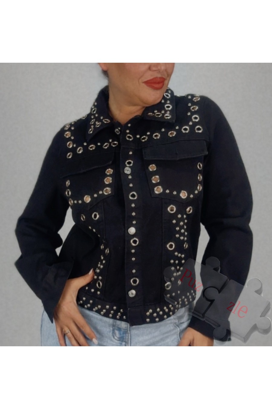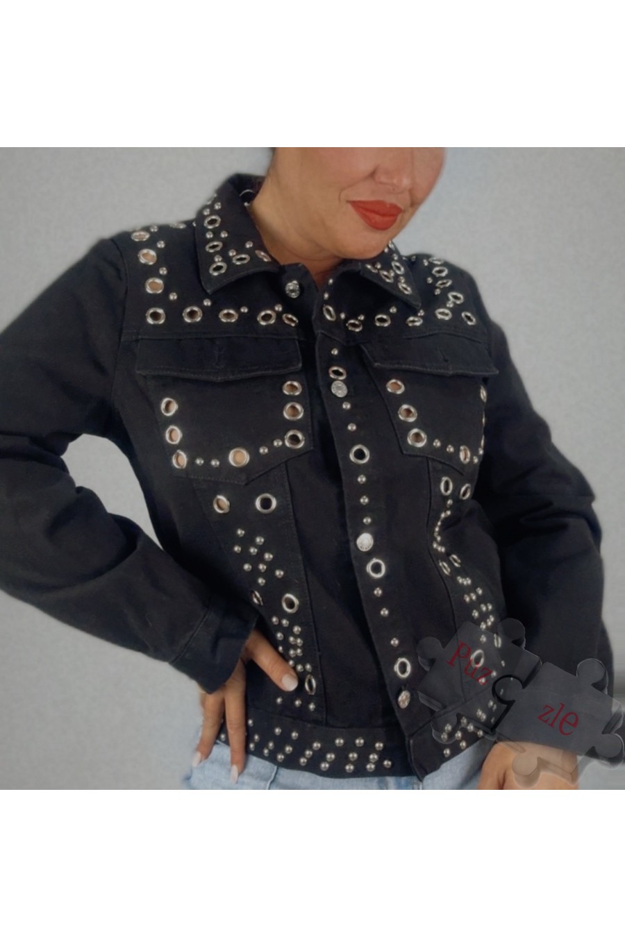 Chaqueta tejana con tachuelas en plata, disponible en tallas