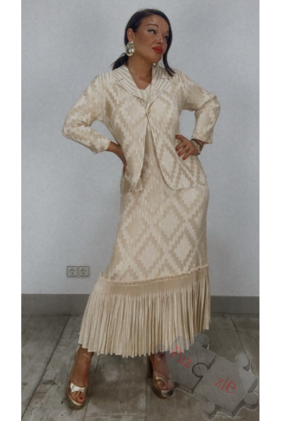 Conjunto de vestido y chaqueta de tejido acordeón , disponible en talla única