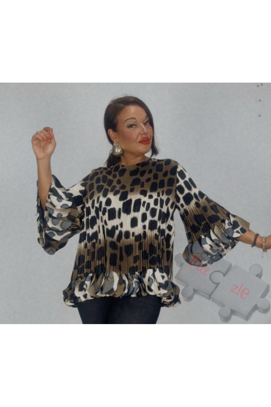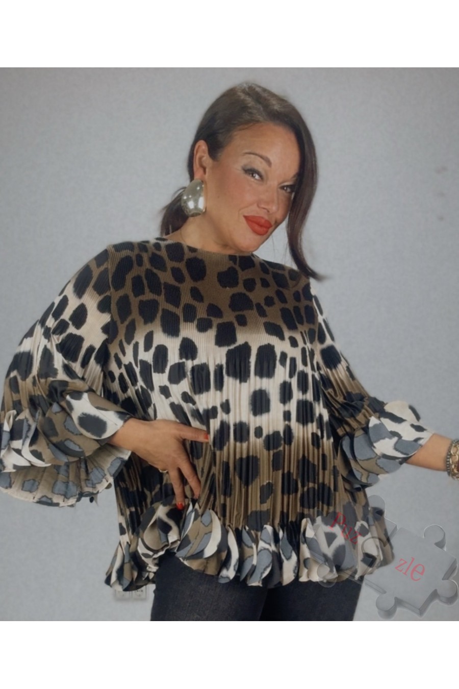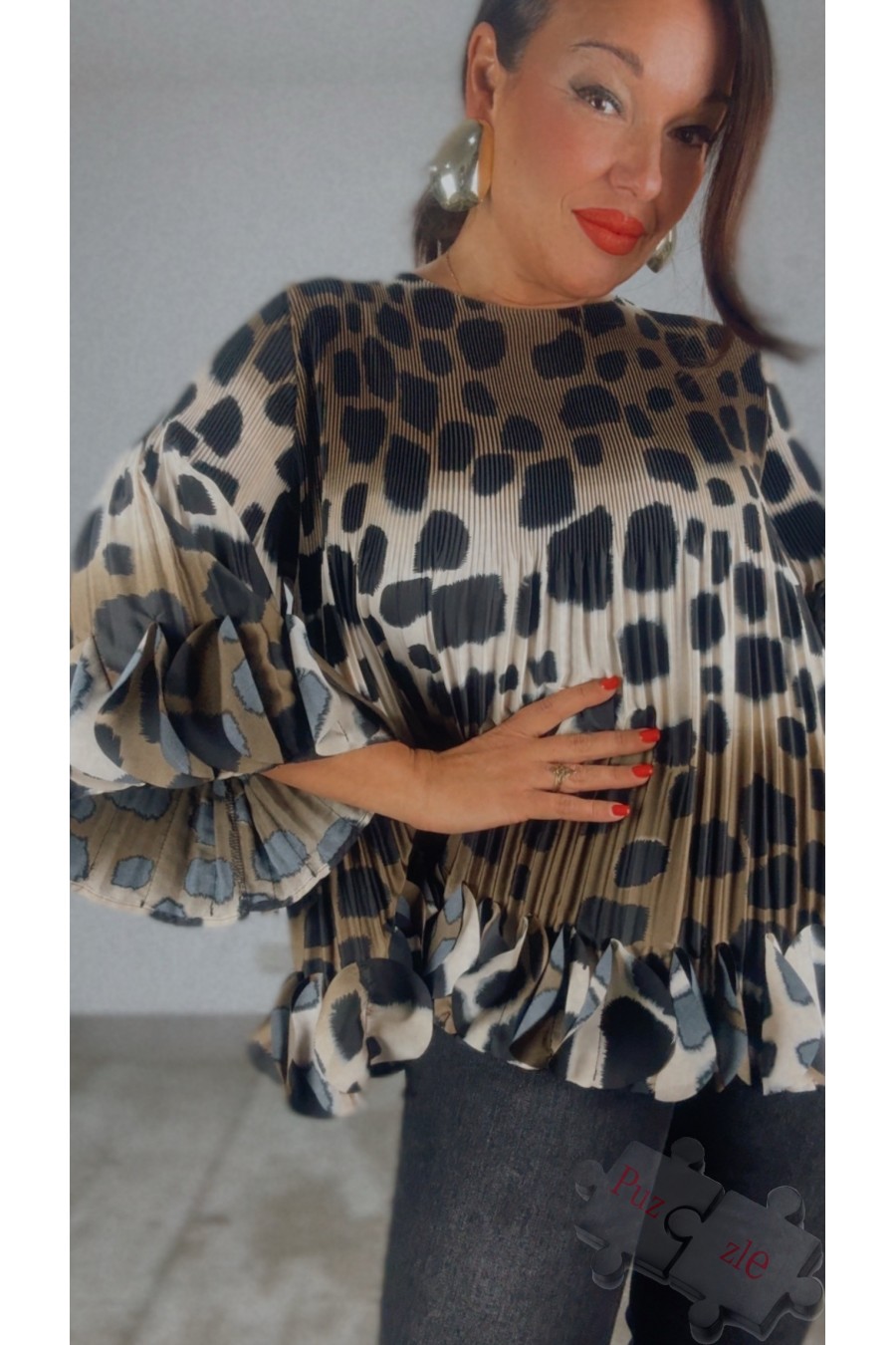 Gabardina de polipiel en marrón contorno vuelto en mangas de leopardo y cinturón , disponible en dos tallas