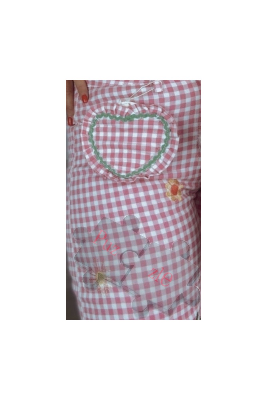 Pantalón tejano de cuadro vichy elástico , disponible en tallas