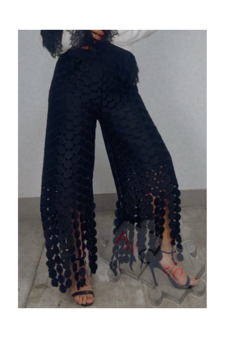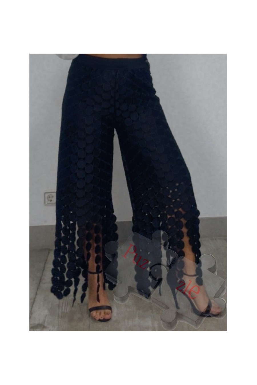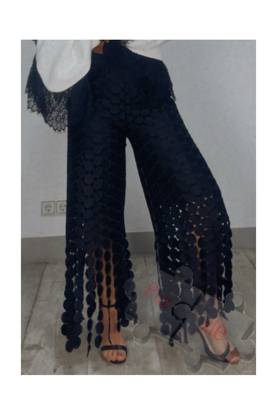 Pantalón de guipur en tono negro , disponible en talla única