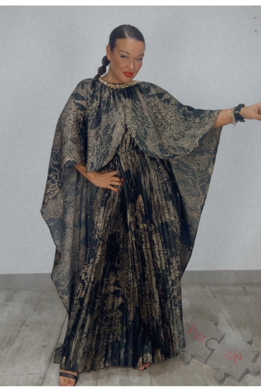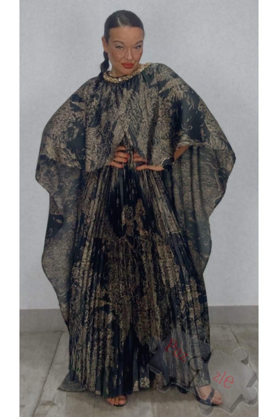 Vestido de satén estampado , con cuello joya , disponible en talla unica