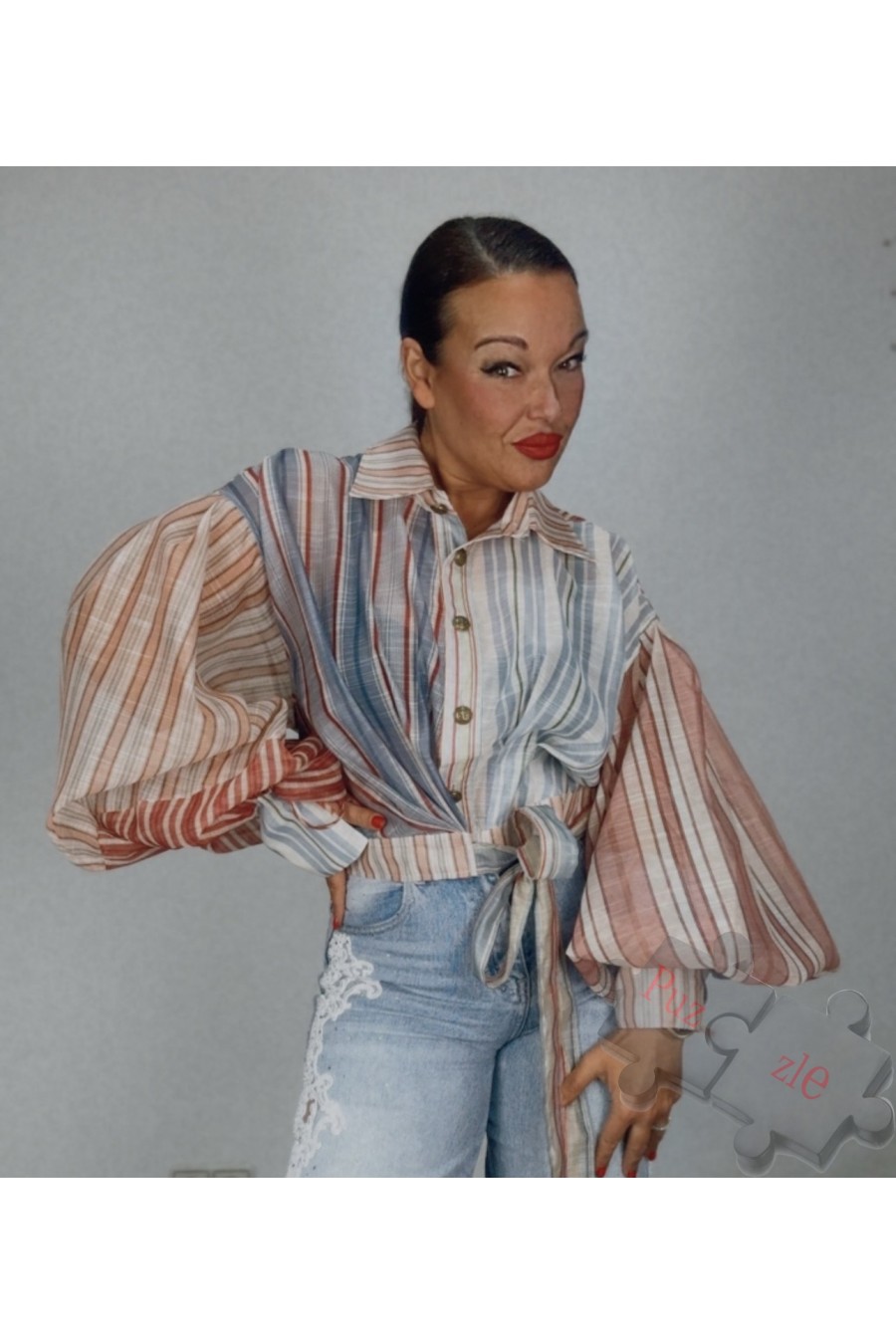Camisa de rayas con dibujo de amapola, disponible en talla única