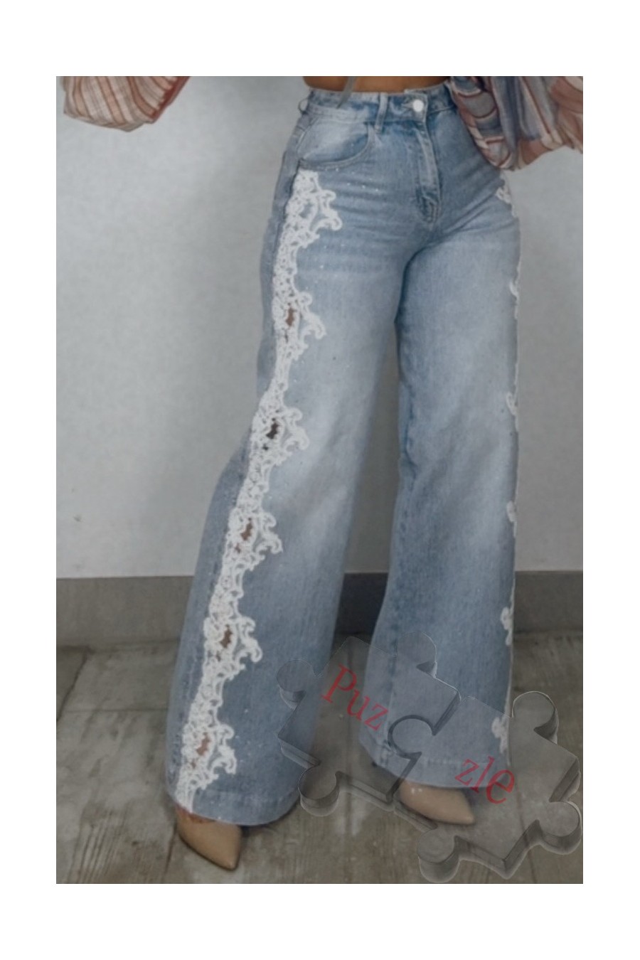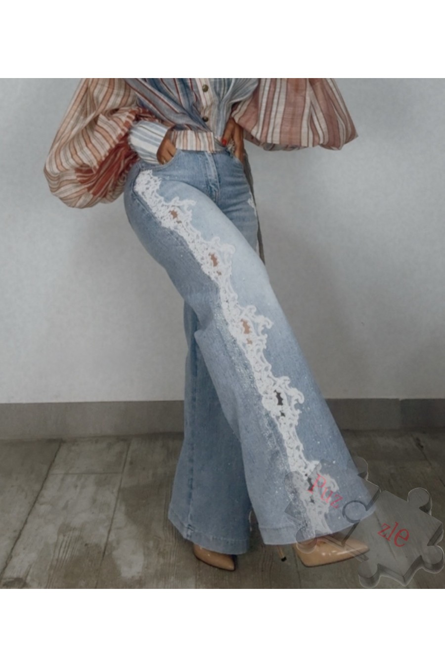 Pantalón tejano elástico con encaje , disponible en tallas: