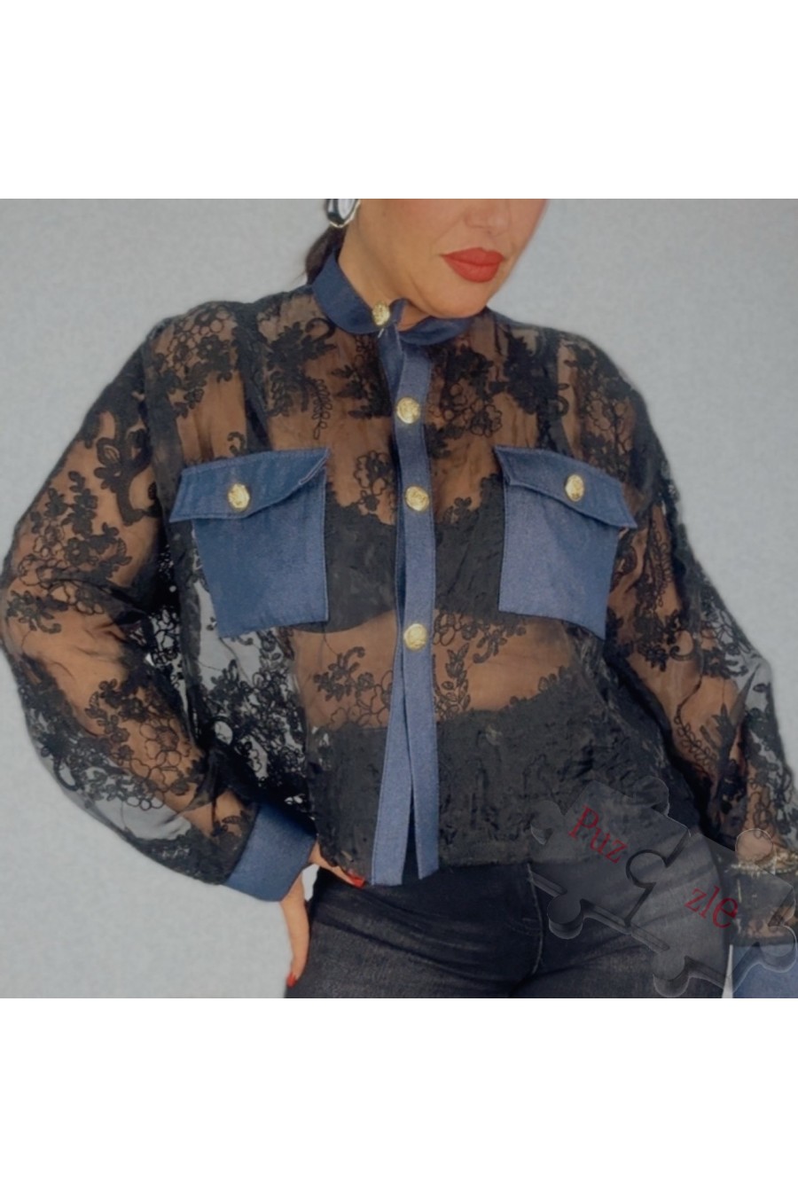 Chaqueta de encaje con tejado, disponible en talla ynica