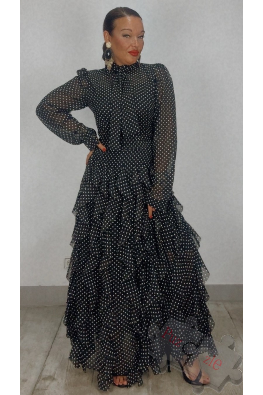 Vestido de gasa con lunares, disponible en dos tallas