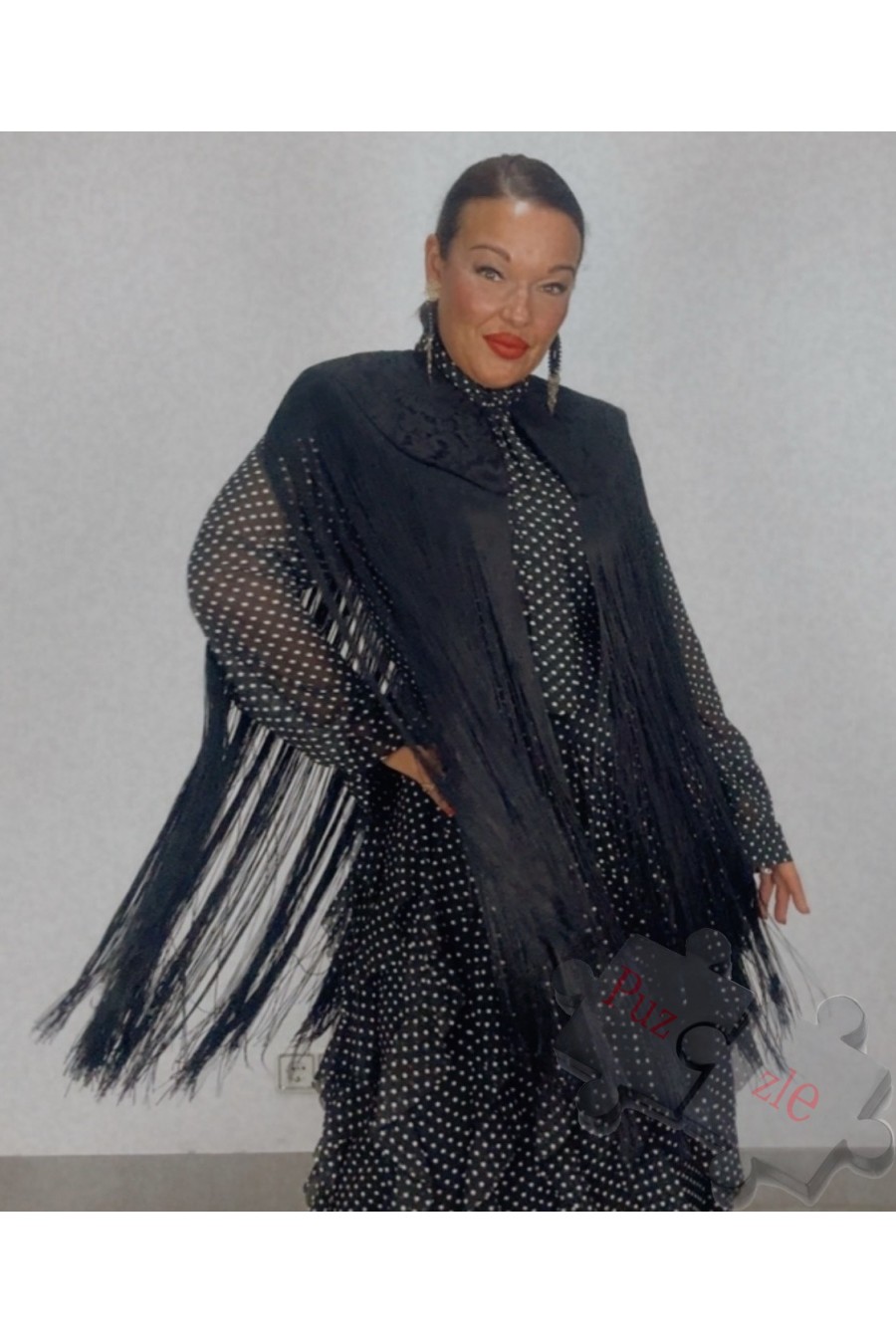 Capa de fleco con hombreras y encaje , disponible en talla única