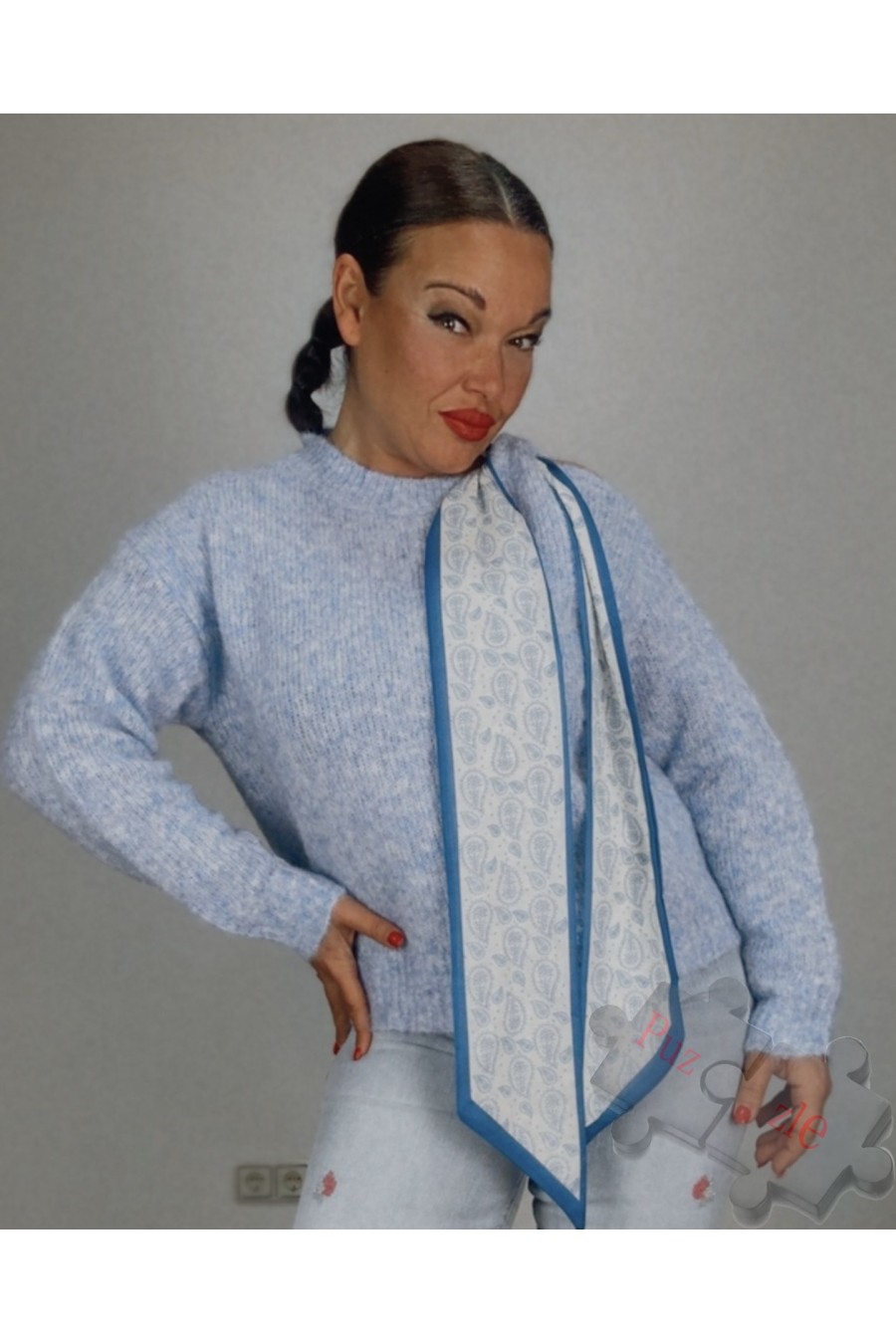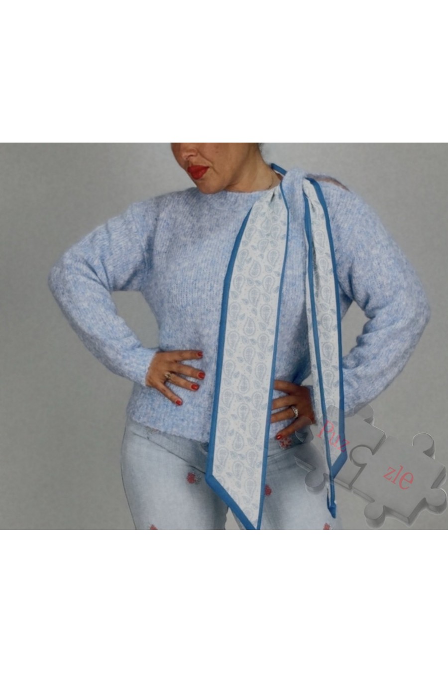 Suéter de lana en tono azul , disponible en talla única