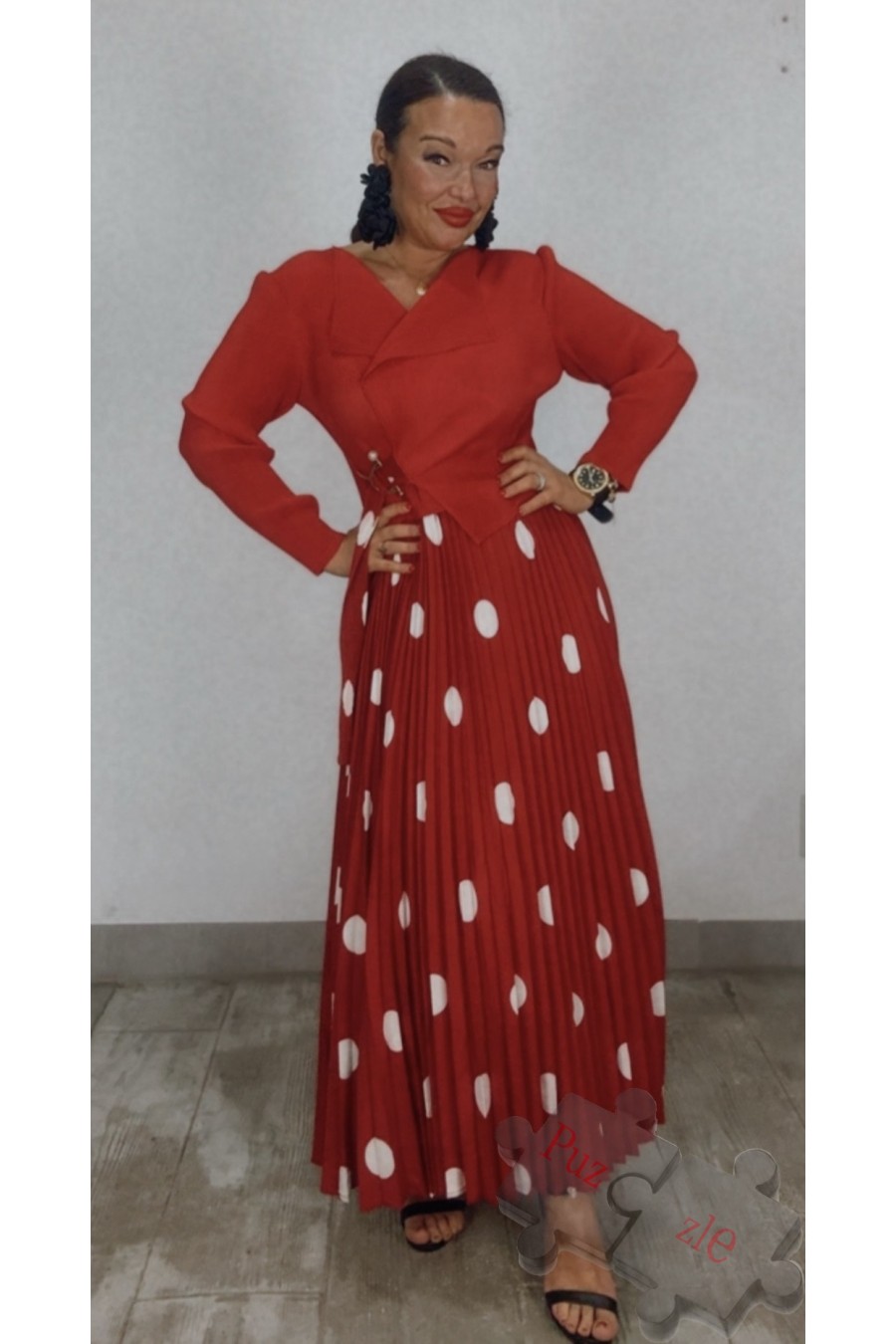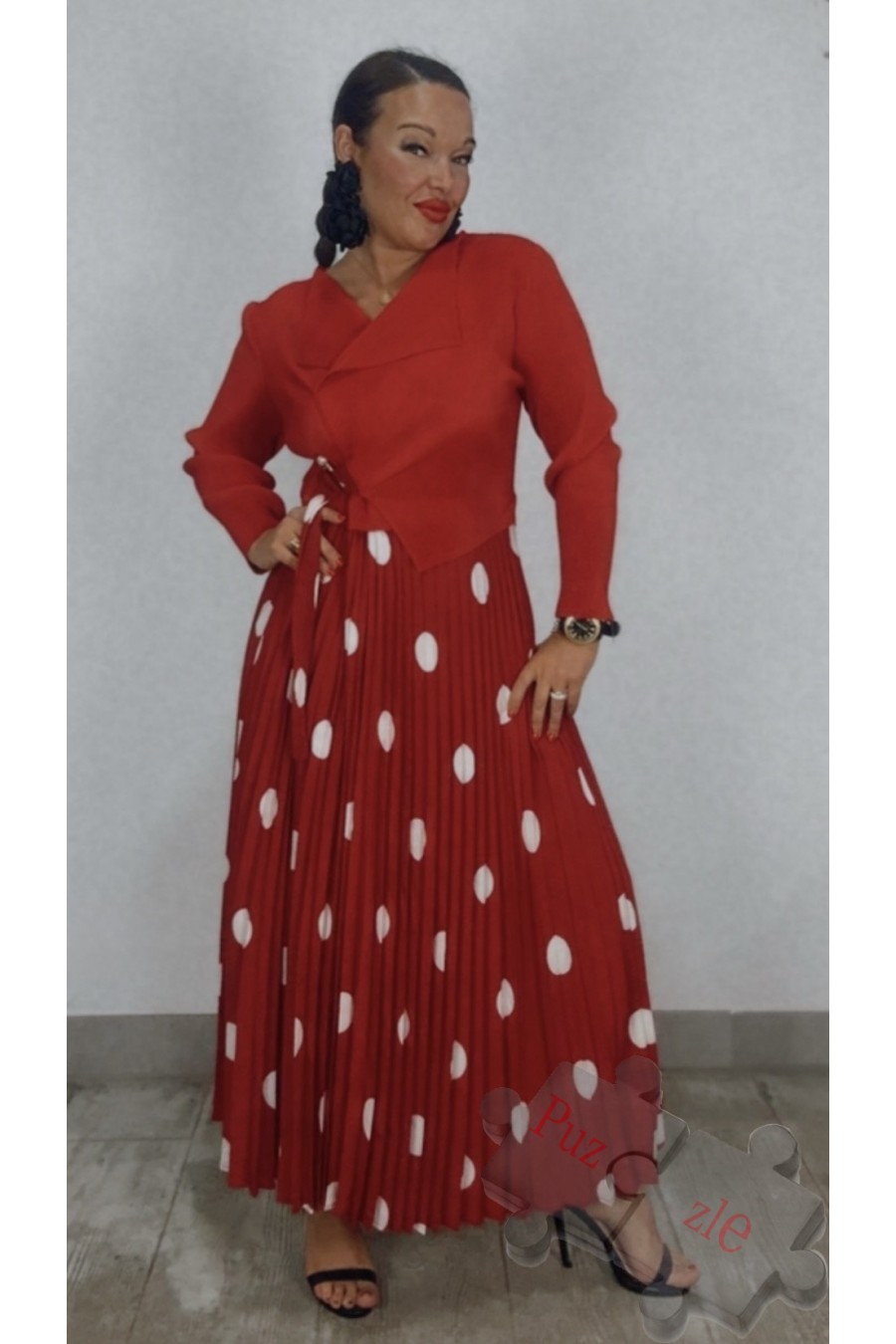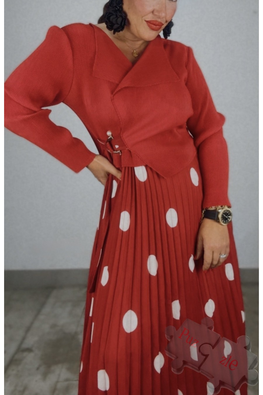 Vestido de tejido acordeón en tono rojo , disponible en talla única
