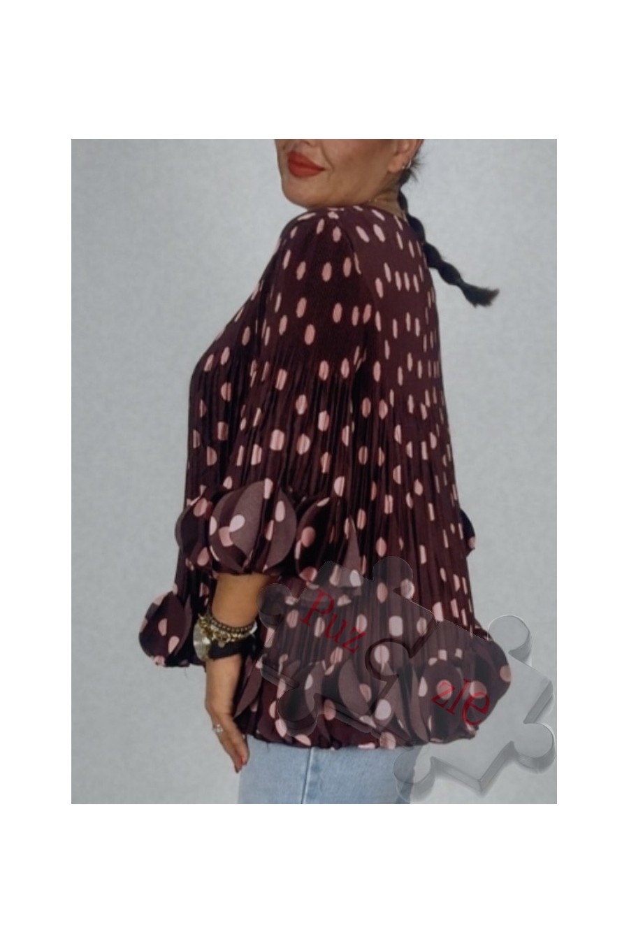 Camisa de tejido plisado estampado en lunares, disponible en talla única