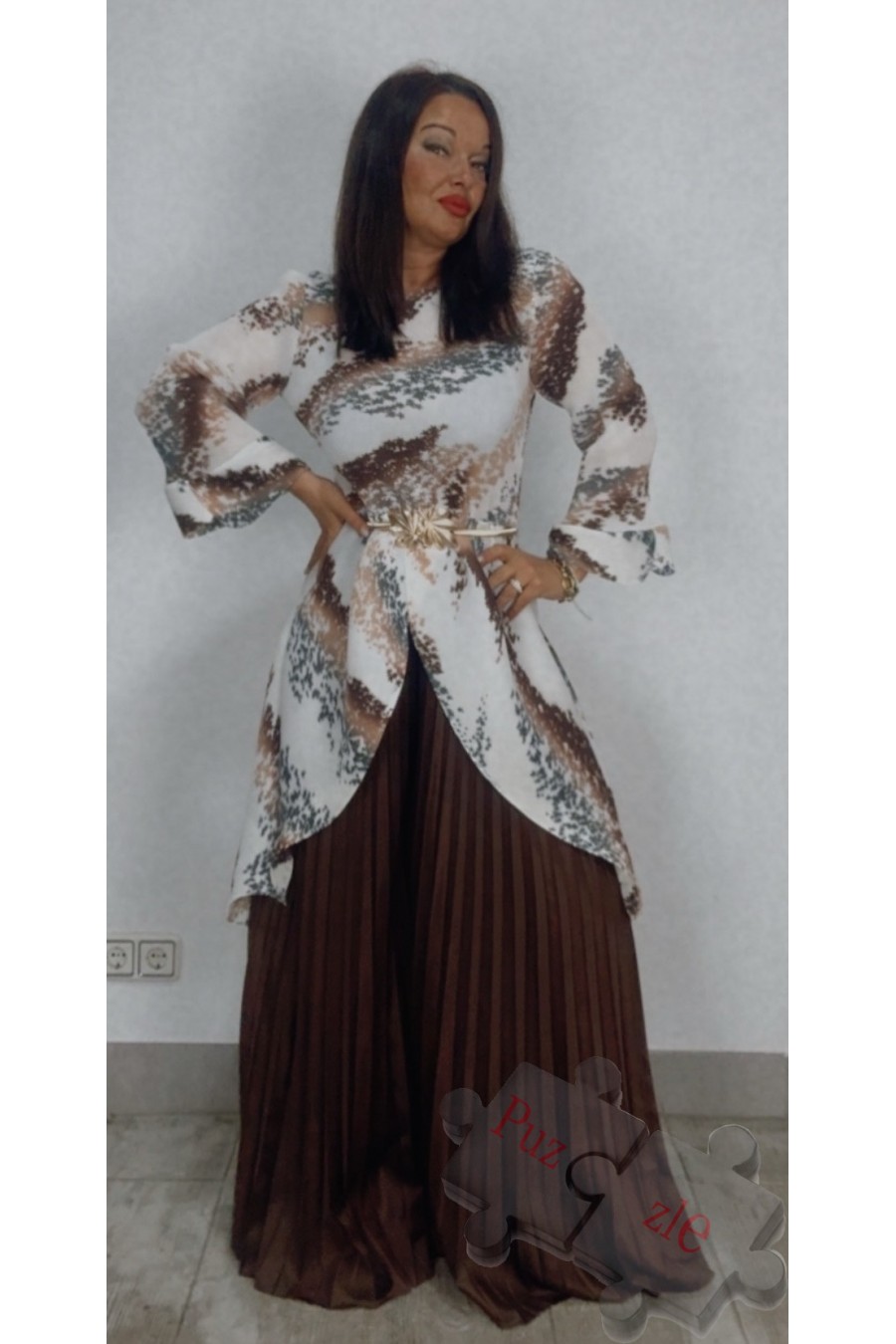 Conjunto de pantalon y casaca en tonos marrones y blancos , disponible en talla única