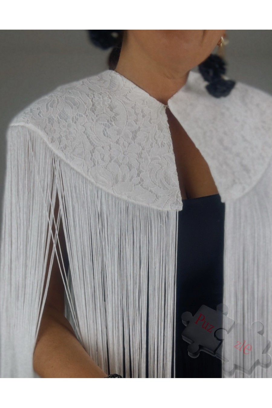 Falda de flecos en tono crudo de antelina elástica , disponible en tallas: