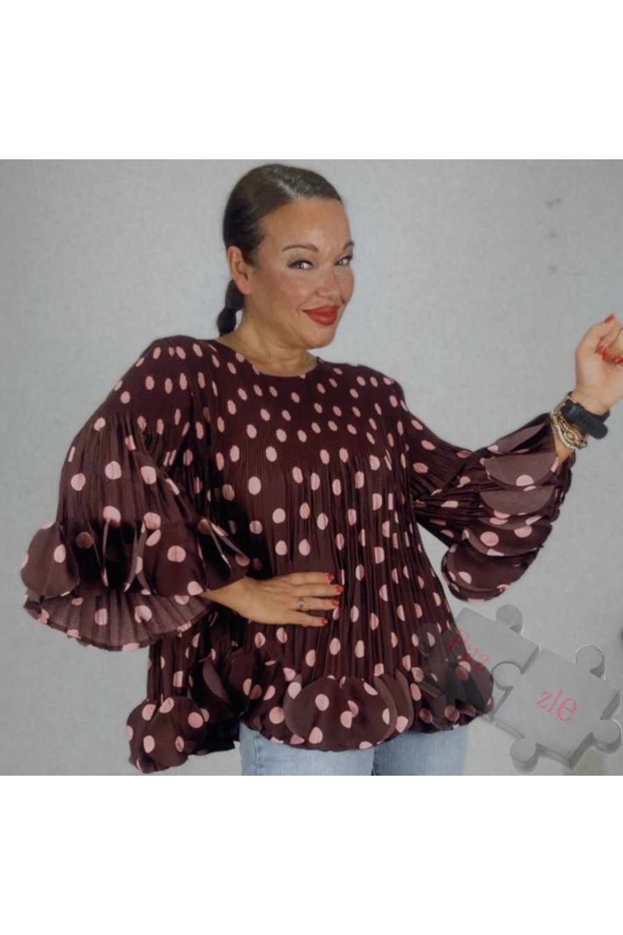 Camisa de tejido plisado estampado en lunares, disponible en talla única