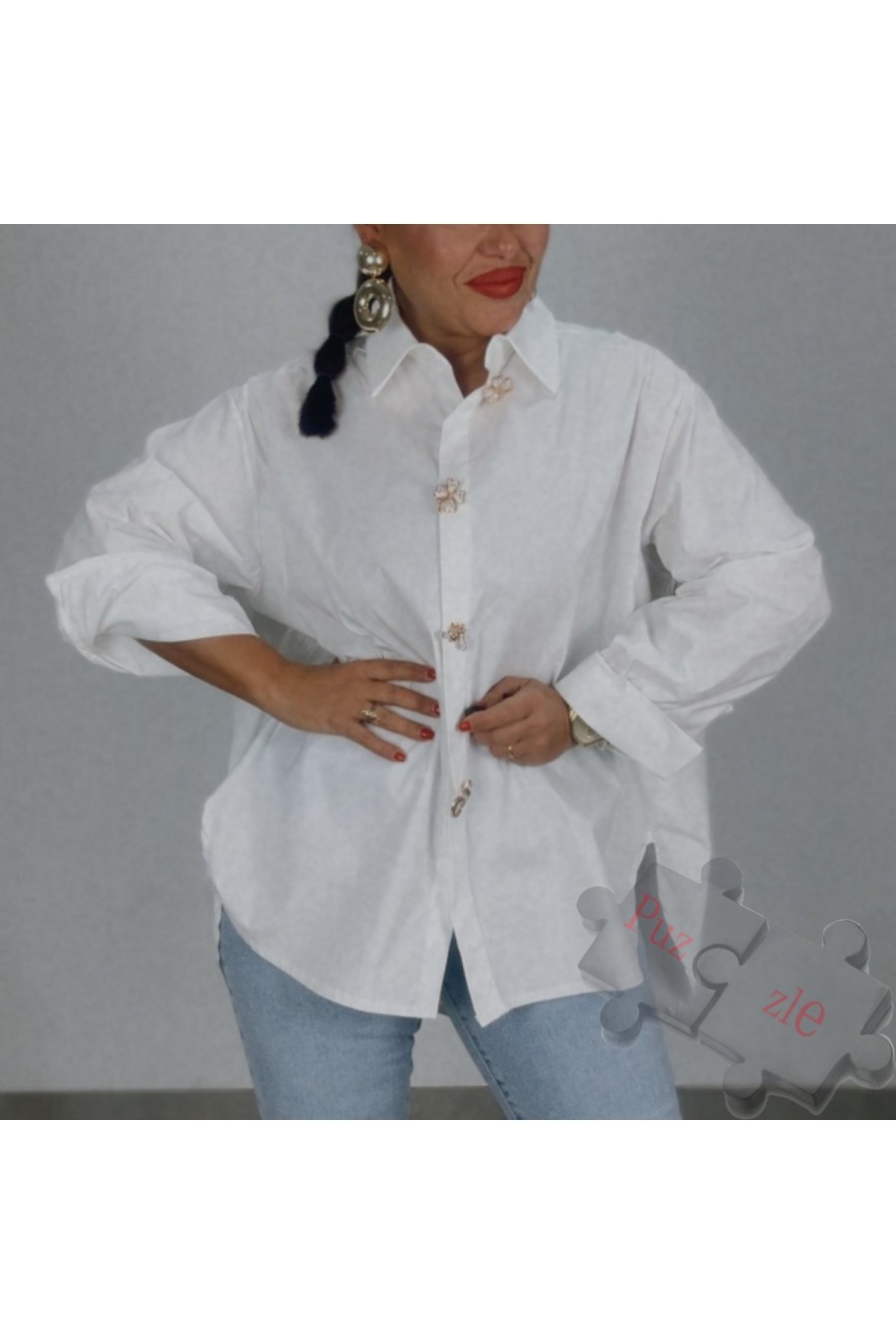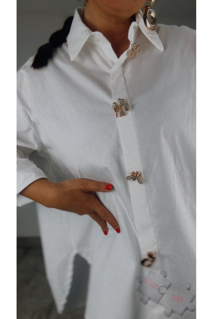 Camisa blanca con broches, disponible en talla unica