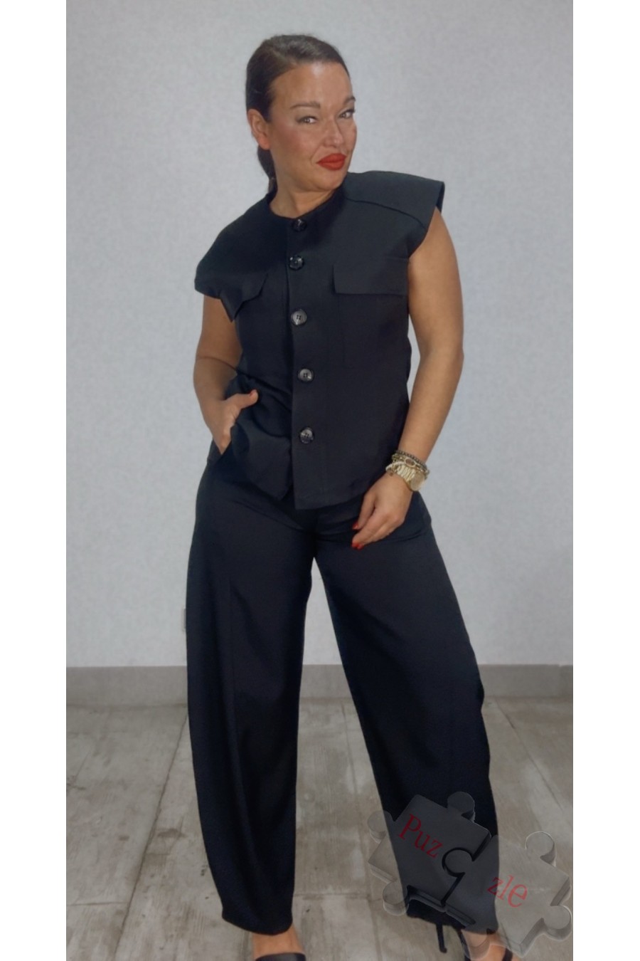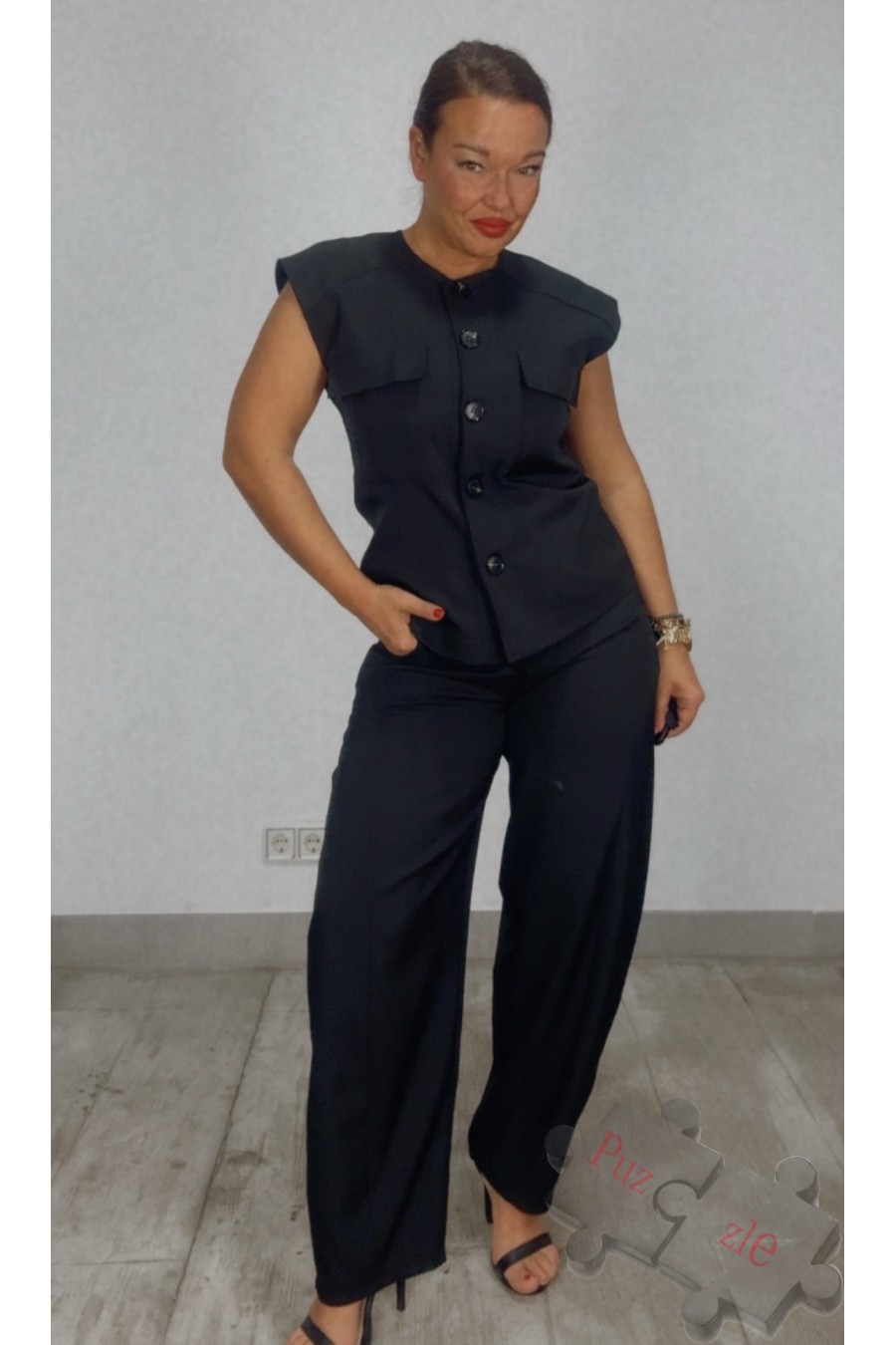 Conjunto de punto milano en tono negro con detalles en dorado , disponible en talla única
