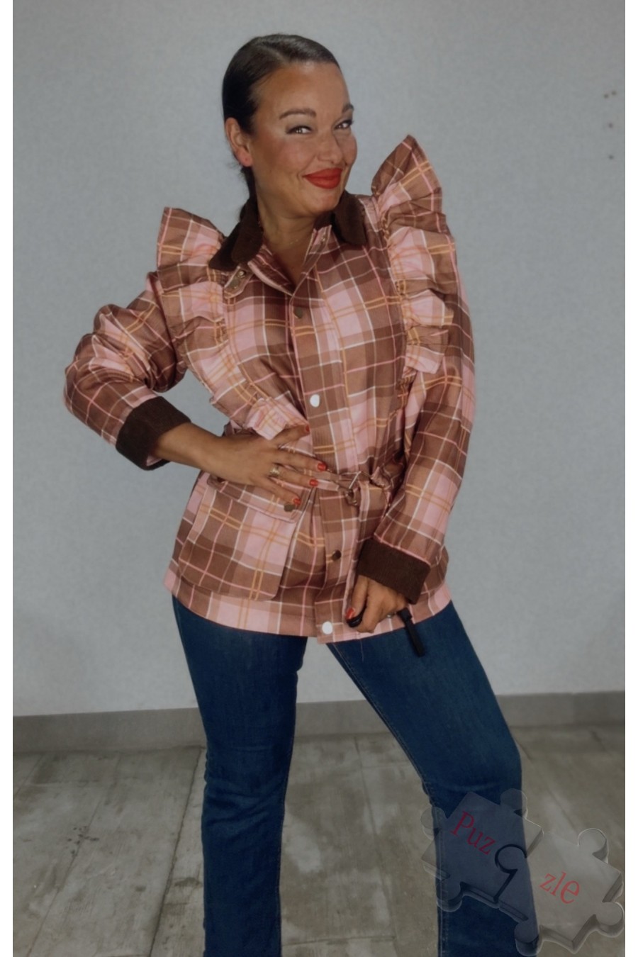 Gabardina de cuadros rosa y marrón , disponible en dos tallas