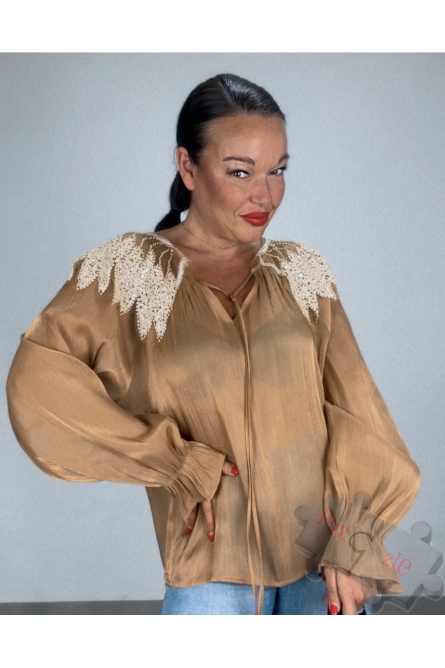 Camisa de cristal con baberola, disponible en talla única