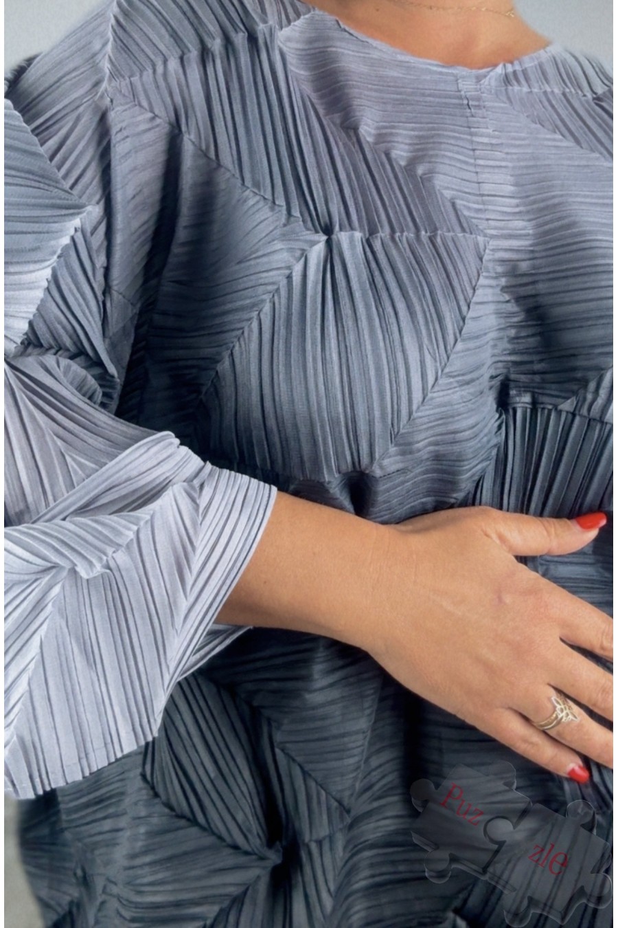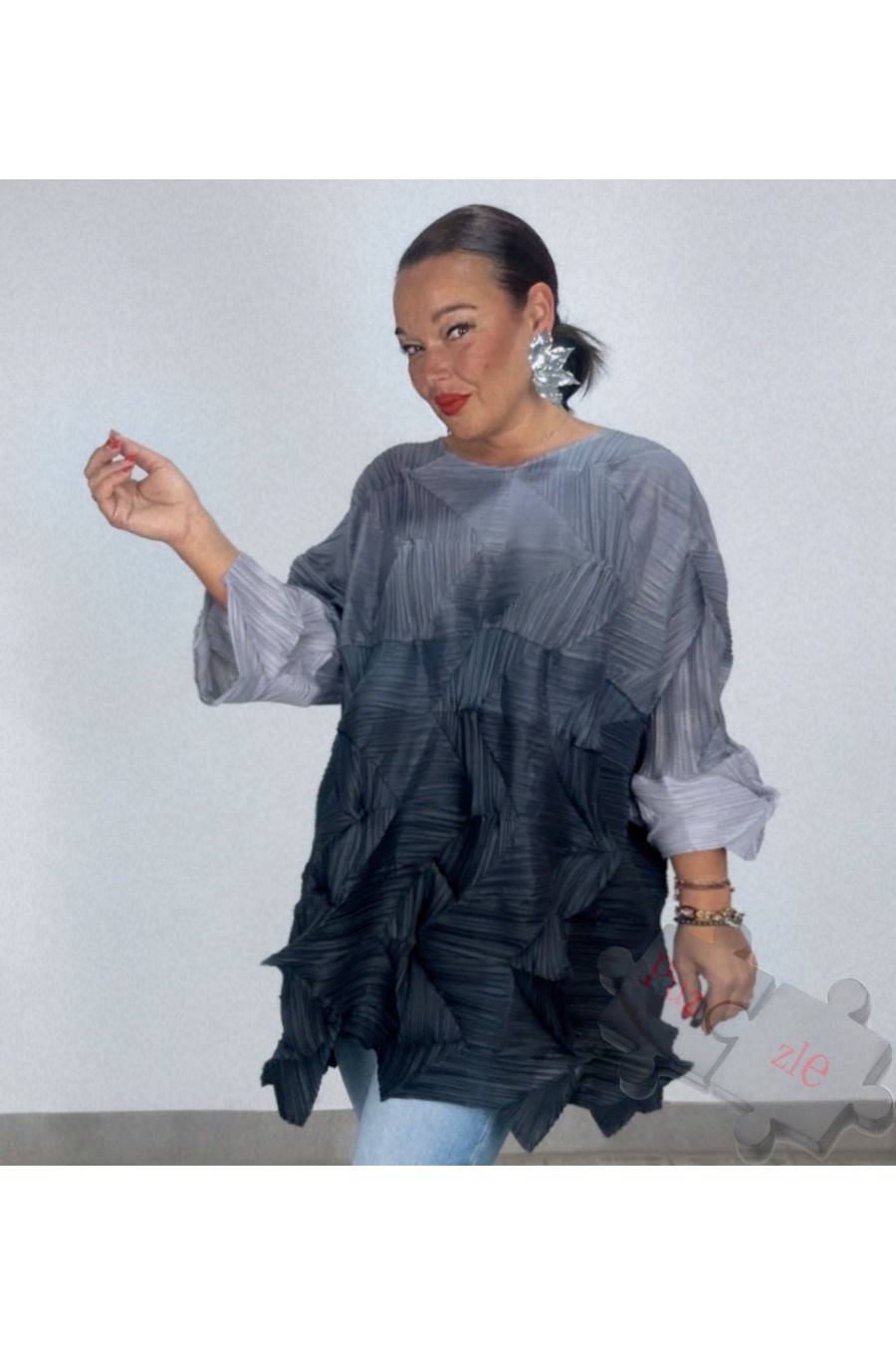 Blusón de tejido acordeón en tonos negros, disponible en talla única