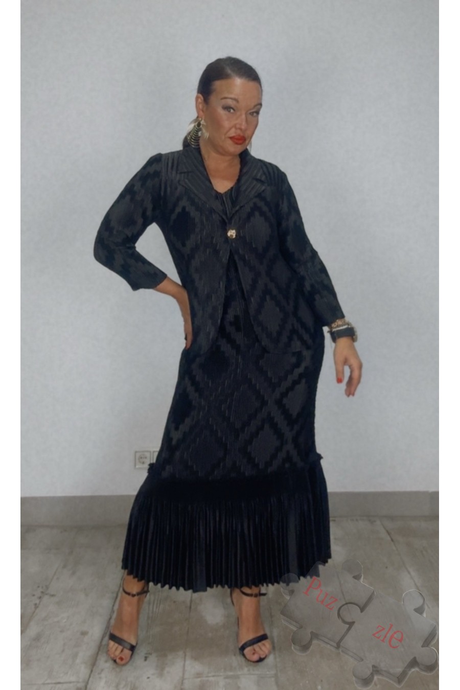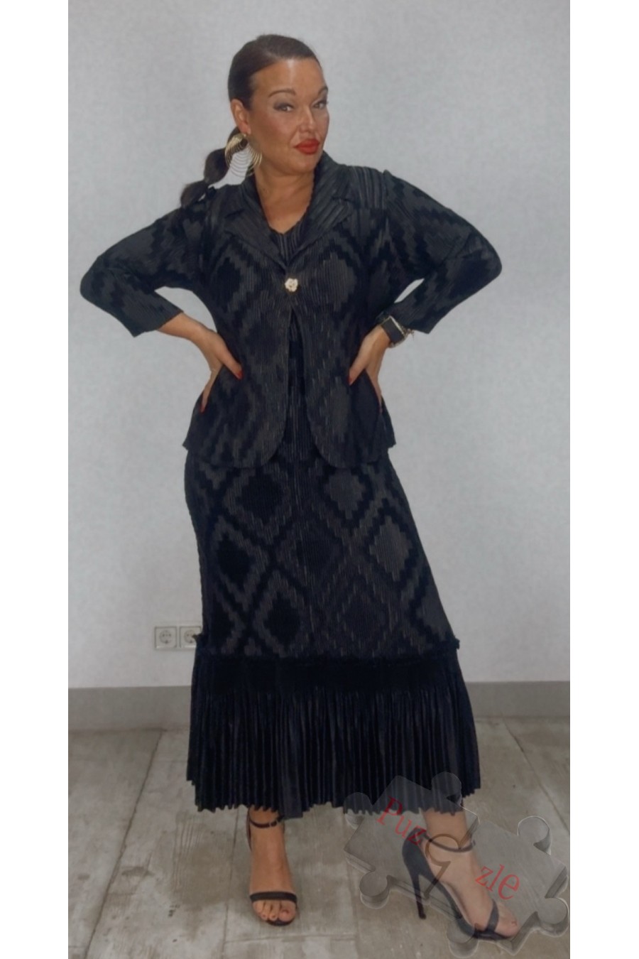 Conjunto de tejido acordeón en tono negro , disponible en talla unica